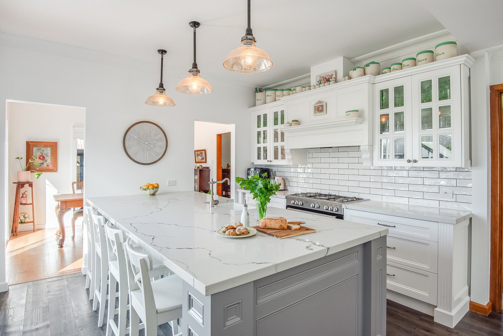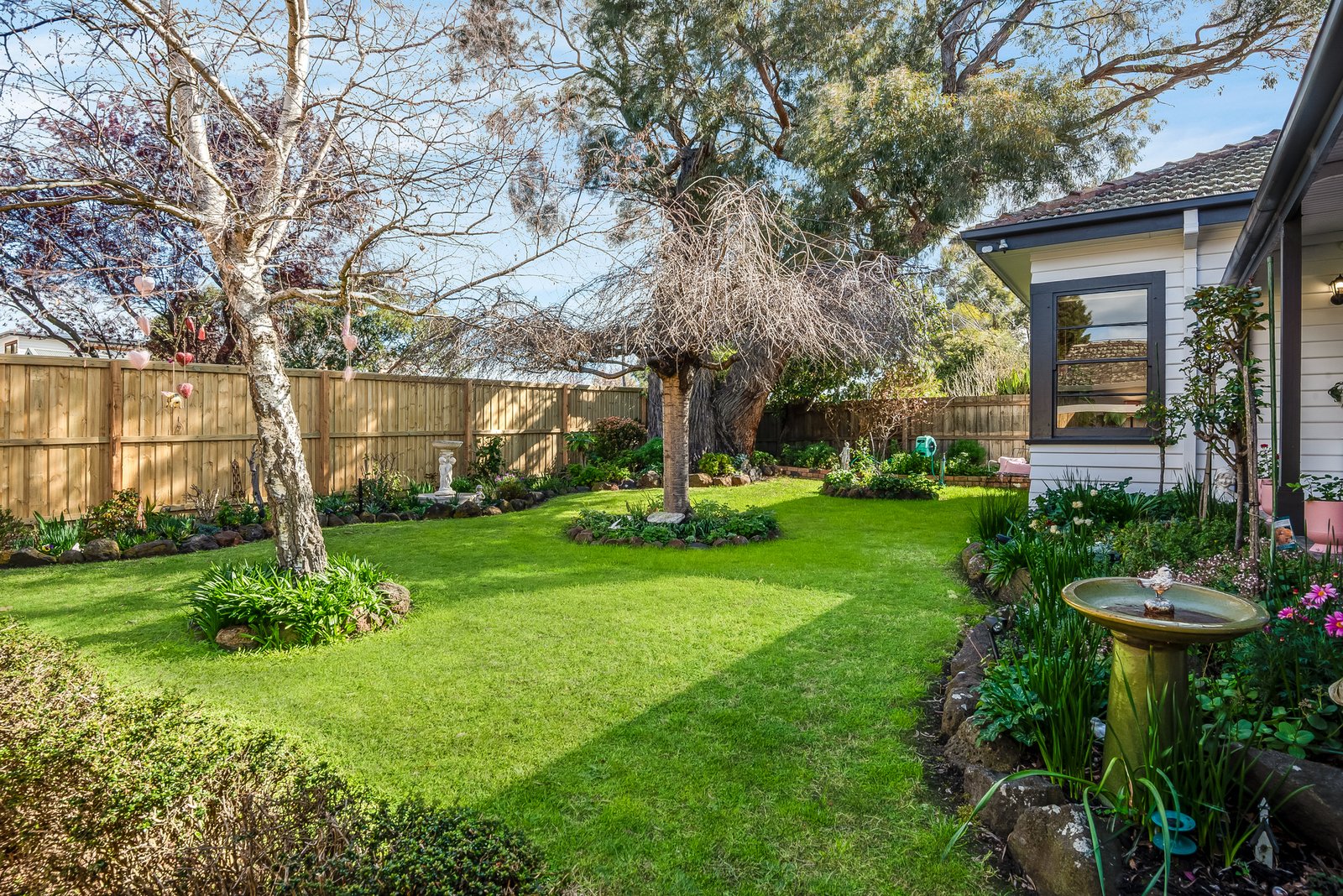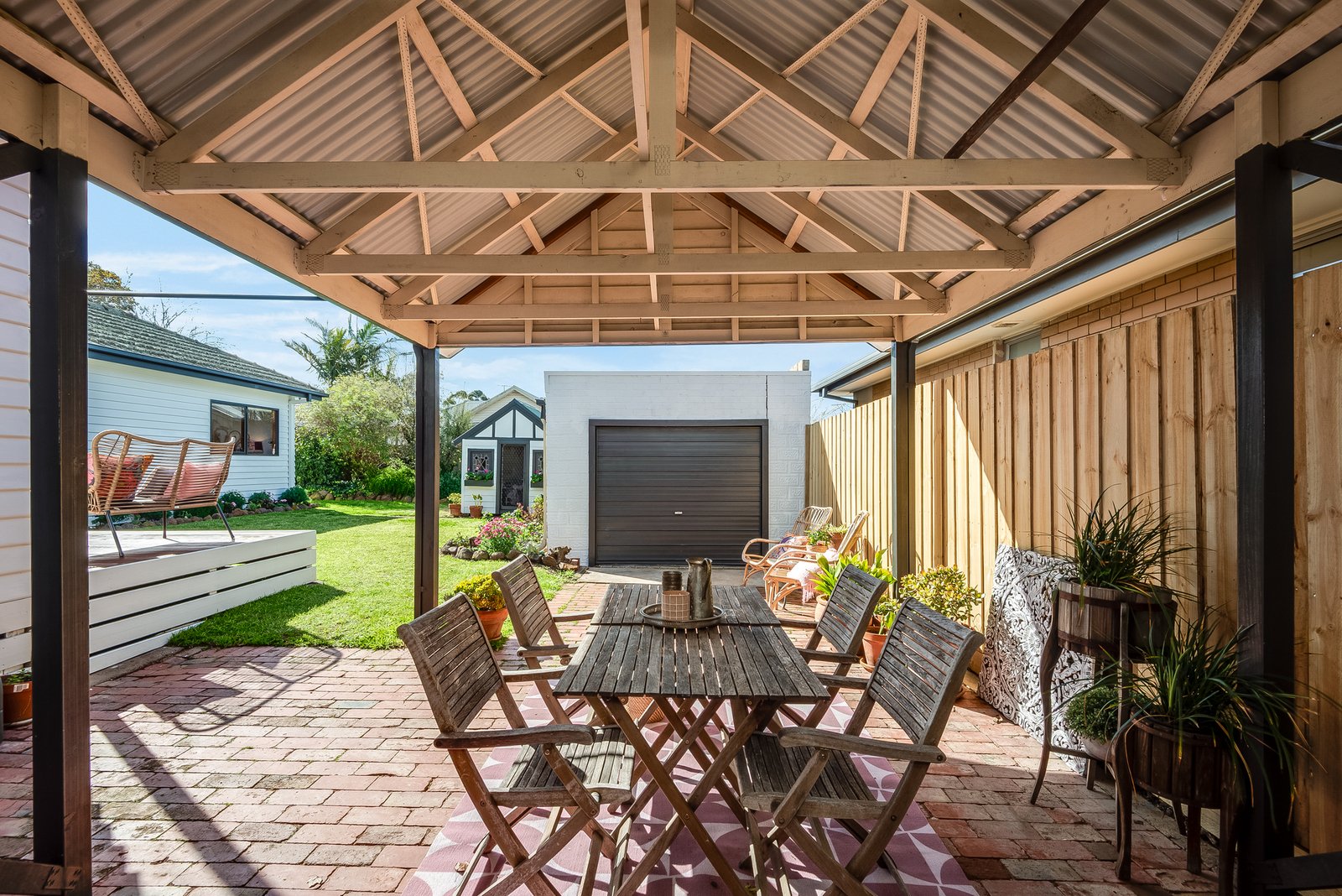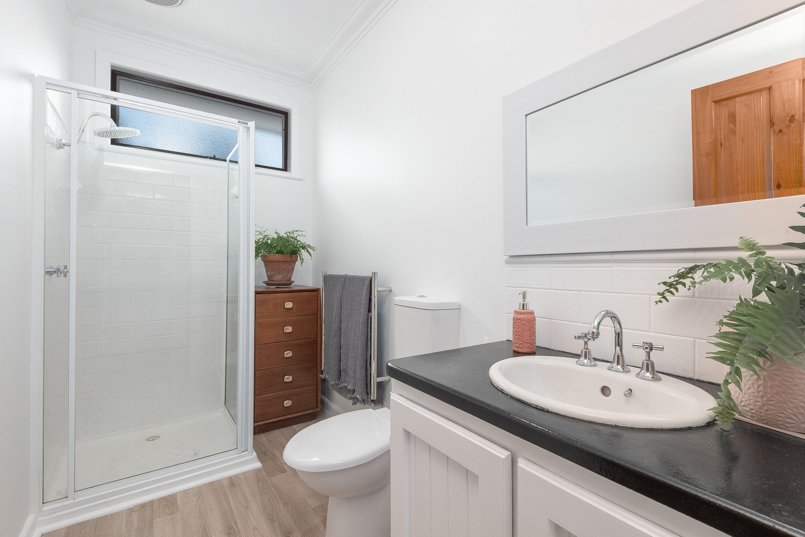 Nestled amongst stunning established gardens, the charming home enjoys a private and tranquil setting, the front veranda offering the perfect spot to take in your picturesque surrounds. A wide entry hall leads into the welcoming living area, showcasing original features including polished timber floors, ornate cornice, beautiful timber windows, brick mantel and bookshelves, along with split system heating and cooling for modern comfort. The adjoining dining room connects with an elegantly updated kitchen featuring stone benchtops, shaker style cabinetry, 900mm oven and cooktop, dishwasher, classic subway splashback, stunning inset butler’s sink, and sophisticated pendant lighting. A sitting nook off the kitchen provides a quiet space to retreat. A series of French doors in the dining area, kitchen, and sitting nook open out to the rear deck, creating an impressive indoor-outdoor entertaining zone.