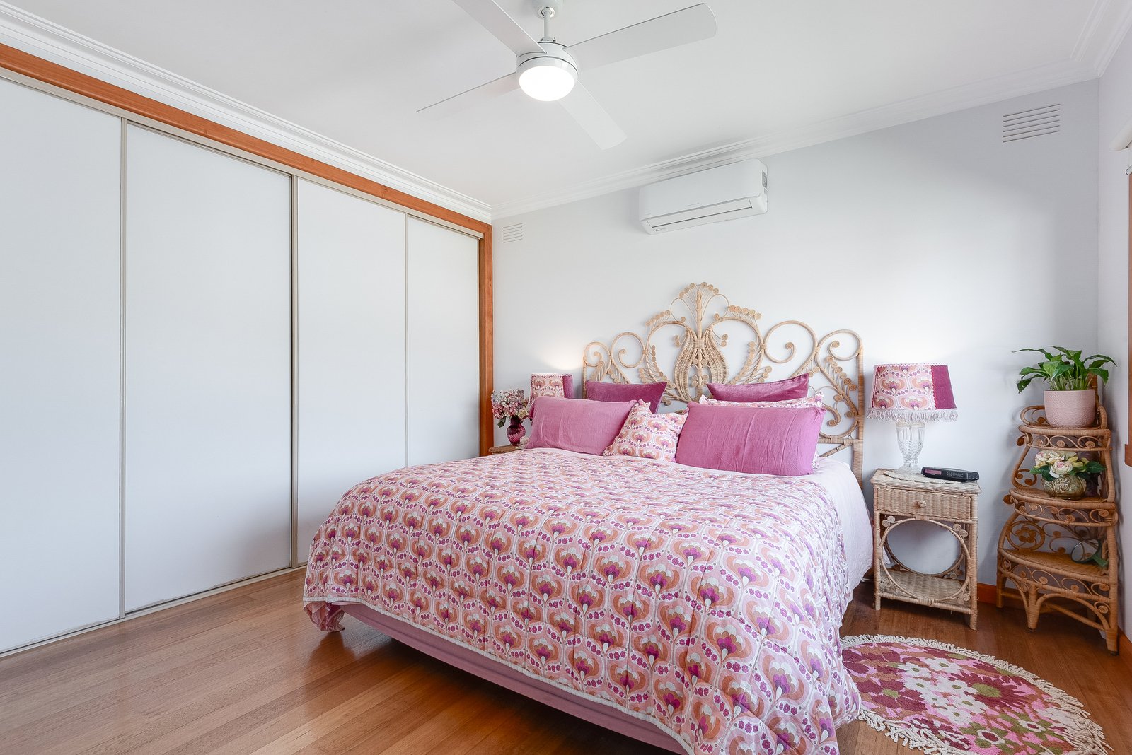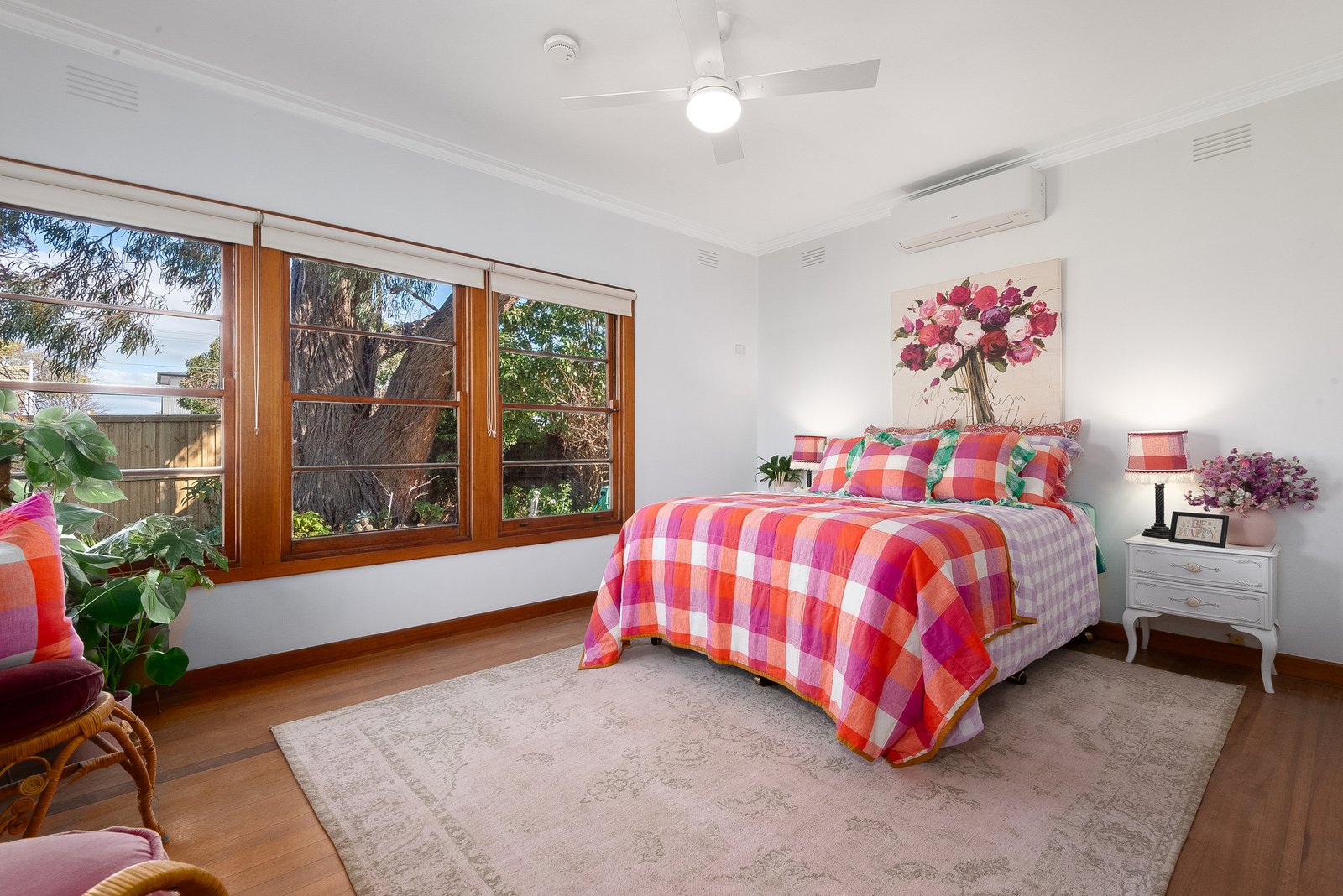 The spacious main bedroom features built-in robes, a ceiling fan, split system heating and cooling, and a scenic garden vista. Three further bedrooms are all generously proportioned, with built-in robes and ceiling fans, the rear bedroom also includes split system heating and cooling. Two updated bathrooms service the front and rear wings of the home, both presented in classic contemporary finishes. A well-appointed laundry and walk-in storeroom offer fantastic functionality.