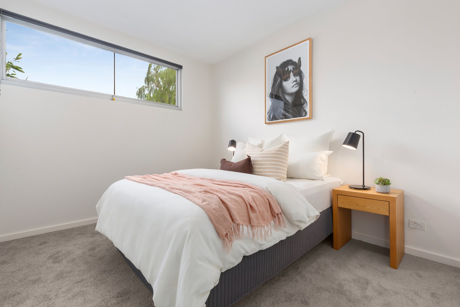 Two further generous bedrooms with built-in robes are serviced by a central bathroom, alongside a versatile study or office area perfect for today’s flexible lifestyle.