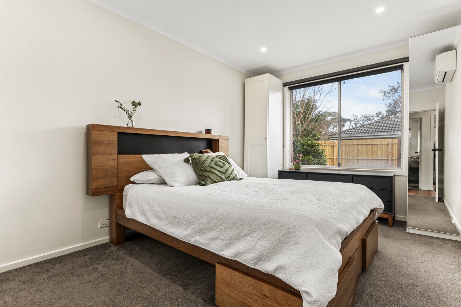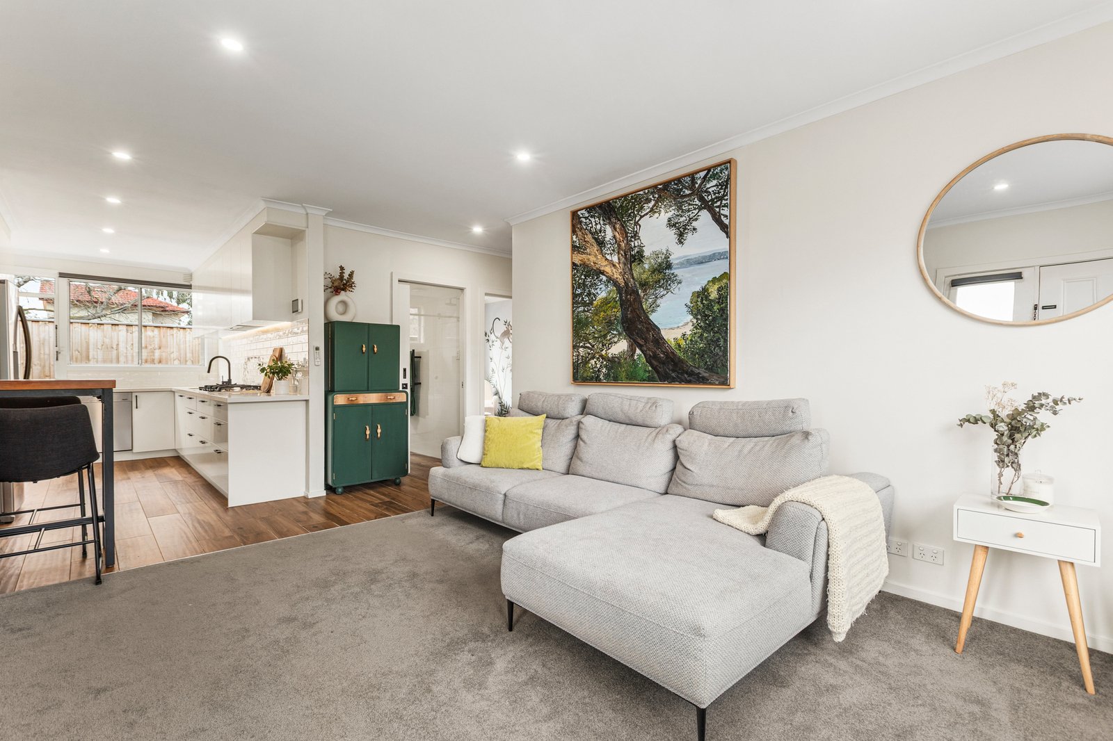 Privately positioned behind a high front wall, this freshly renovated two-bedroom residence offers stylish single-level living with a focus on light, comfort, and privacy. A welcoming porch opens into a sun-filled living room, complete with heating and split-system cooling, creating a cosy and inviting atmosphere all year round.