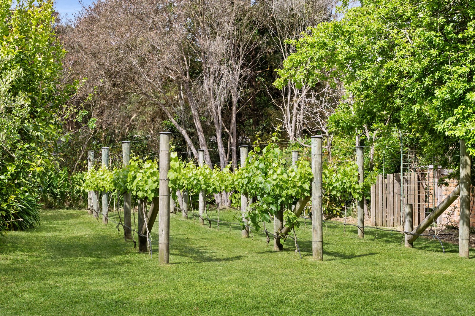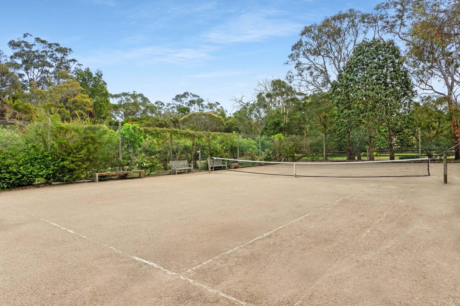 Beyond the home, the grounds invite exploration along meandering garden paths and grapevines that yield seasonal harvests and add a touch of annual charm. A tennis court, outdoor shower for a post-beach rinse, dual carport and additional shedding enriches the outdoor provisions.