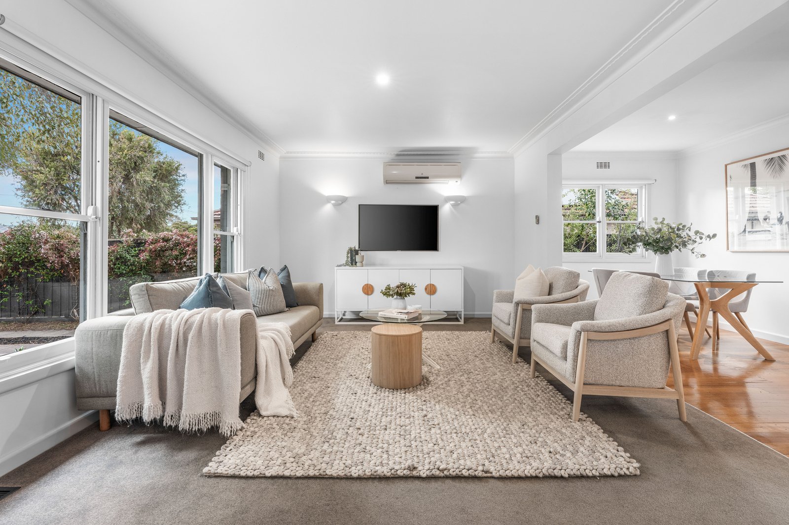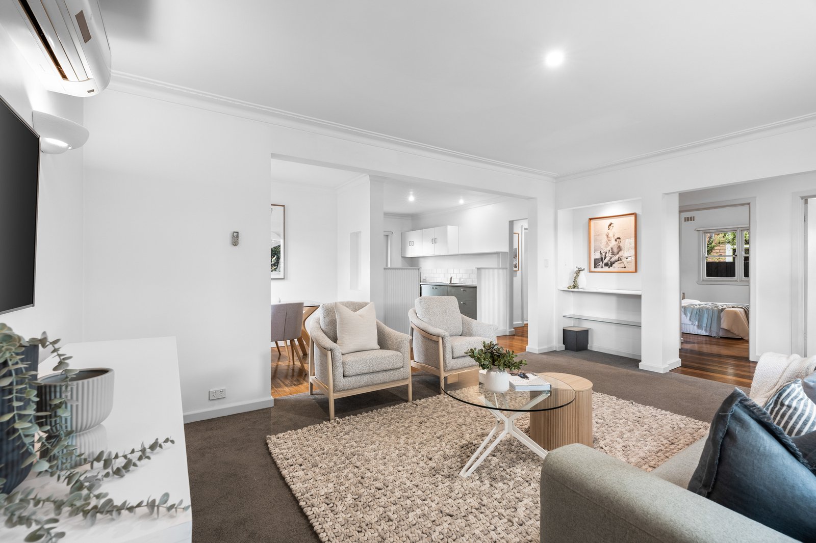 Step inside this polished three bedroom home to find sun-filled north-facing living alongside generous separate dining (or home-office), a quality kitchen with gas cooker and dishwasher, and a stylish bathroom plus handy second WC. Big on vintage charm with solid Australian hardwood floors and high corniced ceilings, this centrally heated and reverse-cycle air-conditioned home offers all you need for today; including robes for each bedroom and a large separate laundry.