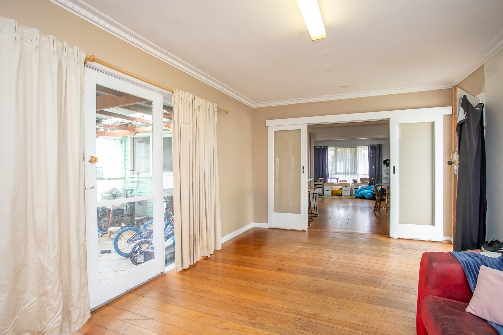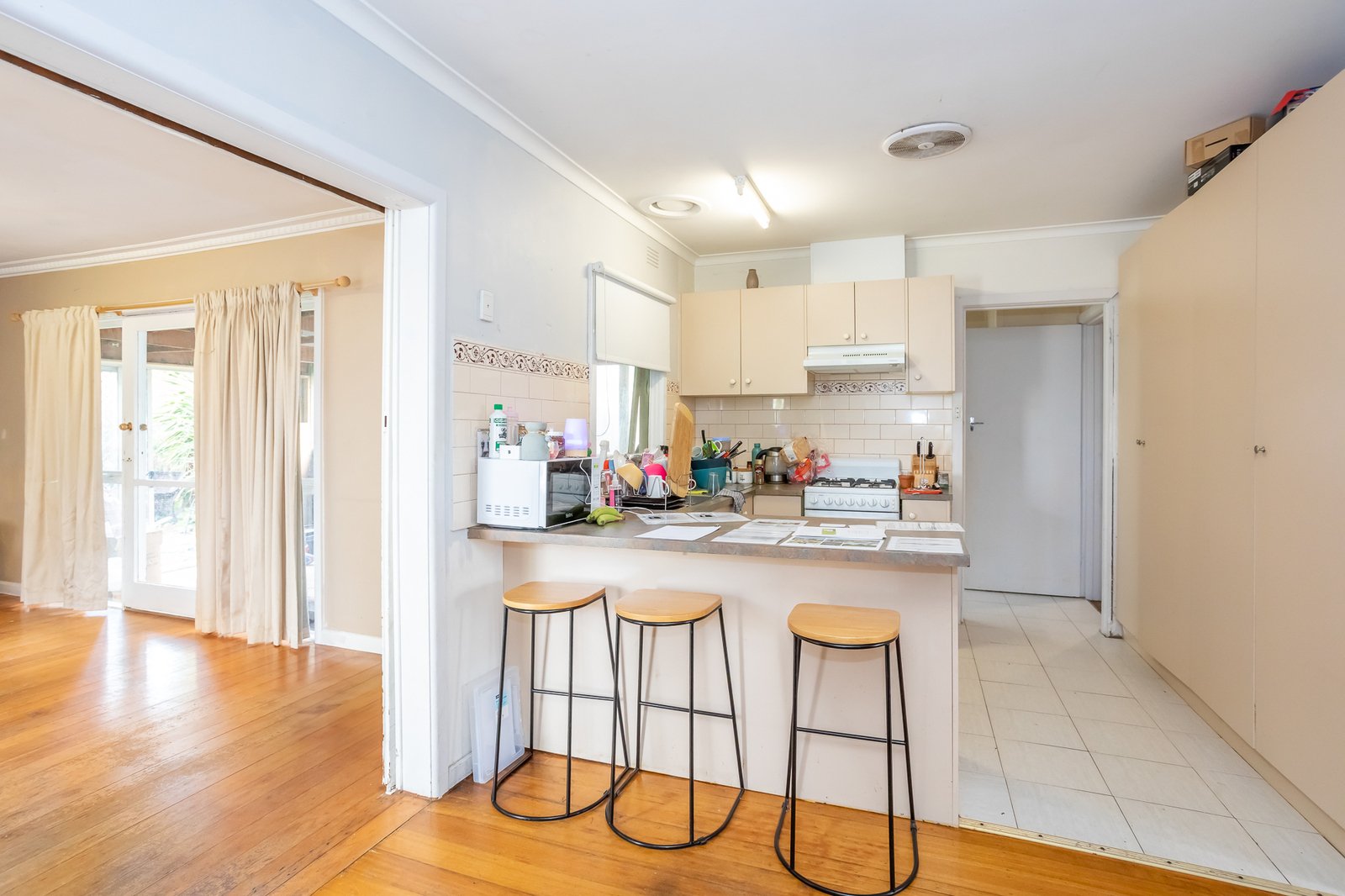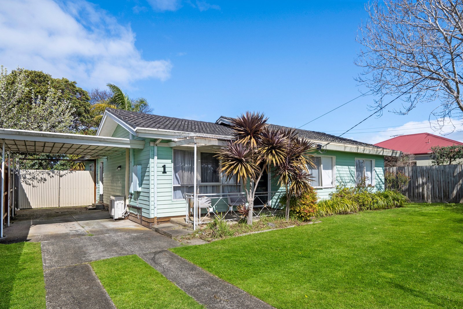 Set beyond a modest weatherboard facade, the existing three-bedroom home offers immediate rental potential or liveability while waiting for plans to take shape. A fireside lounge and secondary family domain provide dual living options, extending to an outdoor entertaining area, while a central hallway links the bedroom wing and main bathroom. Further appointments include a functional kitchen, double carport with rear gated access, a garden shed and split-system heating/cooling.