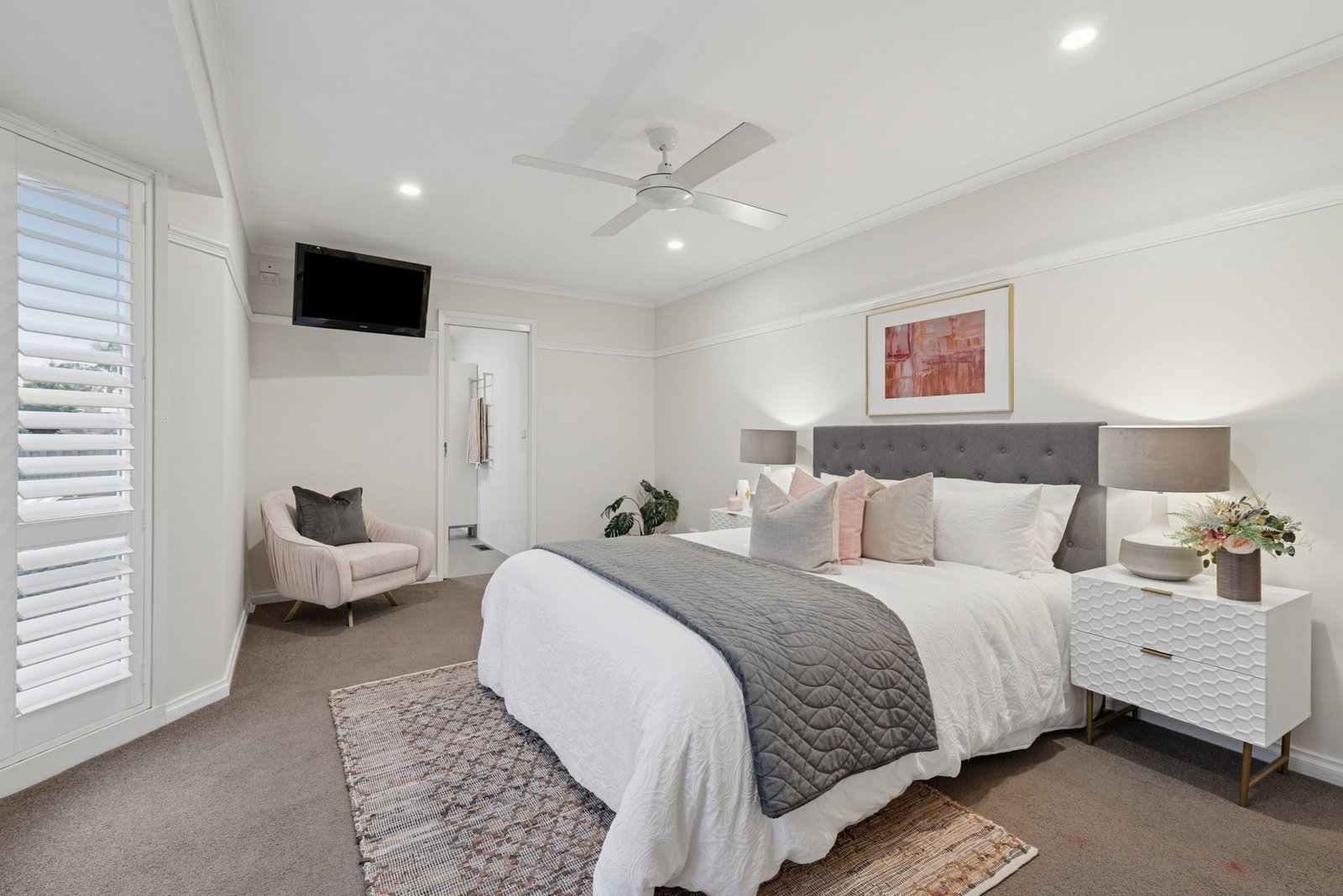 The spacious master bedroom features a charming bay window and a generous walk-through ensuite that leads to a walk-in robe. Three additional bedrooms all include built-in robes, complemented by a central family bathroom. A separate study adds extra flexibility for work or relaxation.