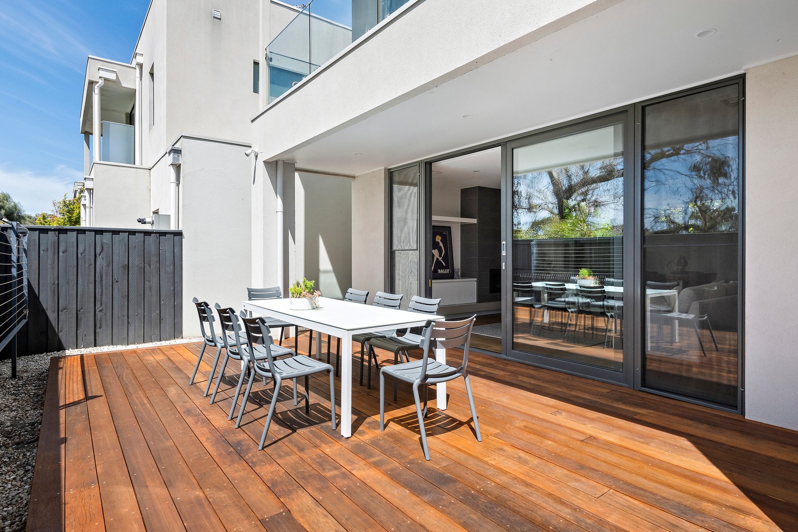 Boasting a prestigious parkside position with breathtaking views across Tjilatjirrin Reserve, this stunning three bedroom, two living zone + study/4th bedroom home is a serene oasis of style, contemporary comfort and superior space. A peaceful and prized pocket surrounded by parklands and golf courses, you’ll love the beach in walking distance, plus Sandringham Village with its vibrant eateries and the train station mere moments away. Inside, discover beautiful family spaces awash with an abundance of natural light, premium finishes and large picture windows that make the most of this leafy locale. Enveloping you in style from the moment you arrive, expansive open plan living and dining will impress with its bespoke cabinetry and gas log fireplace, flowing out to an entertaining deck bathed in northern sunshine and complete with private access to the park for kids and pets to play. The stunning gourmet kitchen will have you hosting in style with its premium Bosch appliances, stone topped surfaces, island bench and large walk-in pantry, while a large cavity sliding door encloses this impressive zone from the remainder of the house. Set amongst the treetops with tranquil aspects at every turn, upstairs you'll find a sun infused lounge room opening to a private balcony that overlooks the reserve, a glamourous master retreat with a luxurious walk-in rain shower ensuite and custom walk-in robe, while the two remaining robed bedrooms share a blissful family bathroom. Finished to perfection with a study or potential fourth bedroom, powder rooms on each level, extensive storage throughout, ducted heating and cooling, plus a double remote garage with internal entry. A premier address adjoining the reserve, just around the corner is Merindah Park, Sandringham East Primary School and Sandringham College, along with Sandringham Hospital, Firbank Grammar, the Sandringham Family Leisure Centre, golf courses and transport links.
