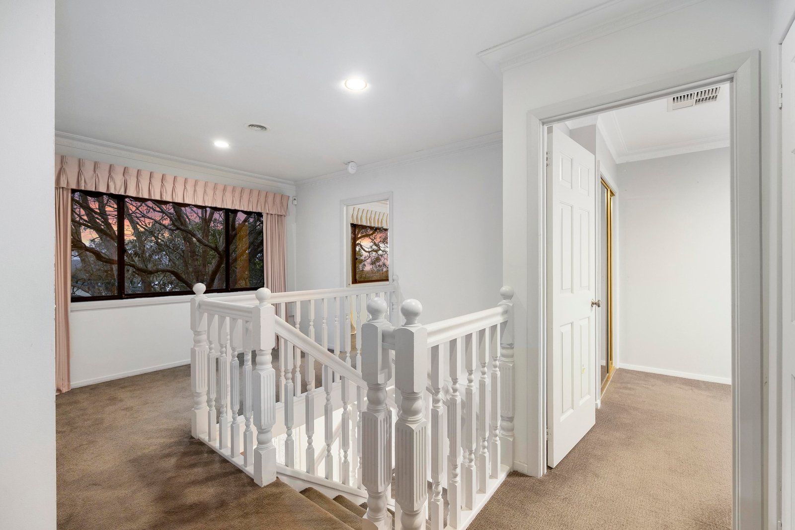 Upstairs, the king-sized master suite includes a walk-in robe and full ensuite. Three additional queen-sized bedrooms, each with built-in robes, are complemented by a spacious retreat or study area. The family bathroom is nearby, complete with a large bath, shower, vanity and separate toilet.