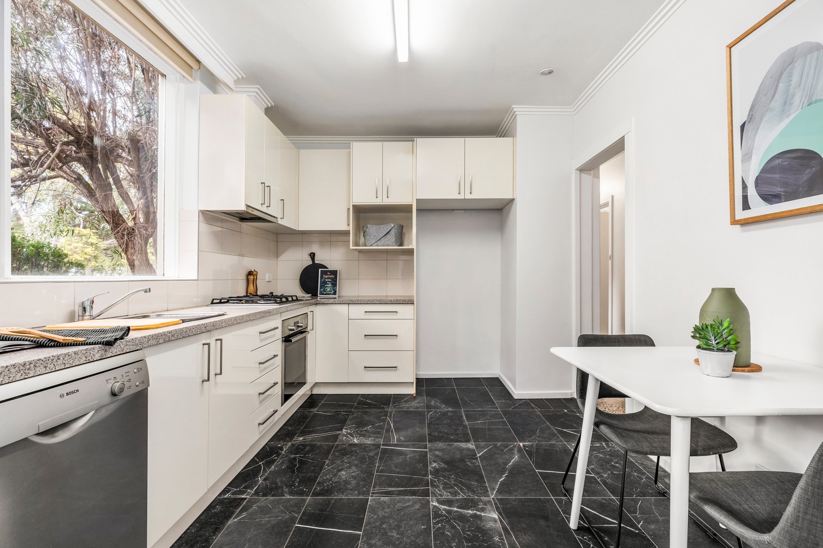 Set in a quiet and highly sought-after Elsternwick pocket, this beautifully updated property offers a lifestyle of comfort and ease. A bright and spacious living area welcomes you on arrival, complete with heating and cooling to ensure year-round comfort. The open-plan design flows effortlessly into the renovated kitchen, appointed with quality appliances, sleek stone benchtops, and ample storage, perfect for both entertaining and everyday living. Two generous bedrooms, each with built-in robes, provide peaceful retreats, while the central bathroom impresses with modern finishes, a shower, and a separate bathtub. Adding to the appeal are two undercover tandem car spaces, offering convenience and security. Ideally positioned near local schools, leafy parks, Glen Huntly Road’s vibrant shops and cafes, and excellent public transport, this home combines style, functionality, and location to deliver an exceptional opportunity for homeowners and investors alike.