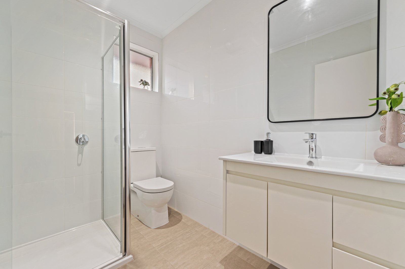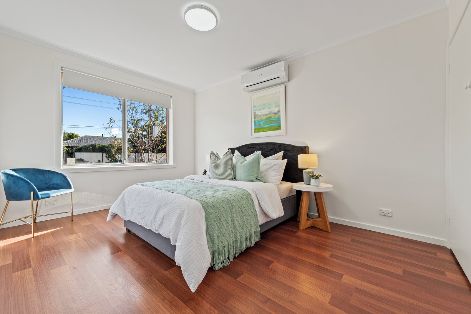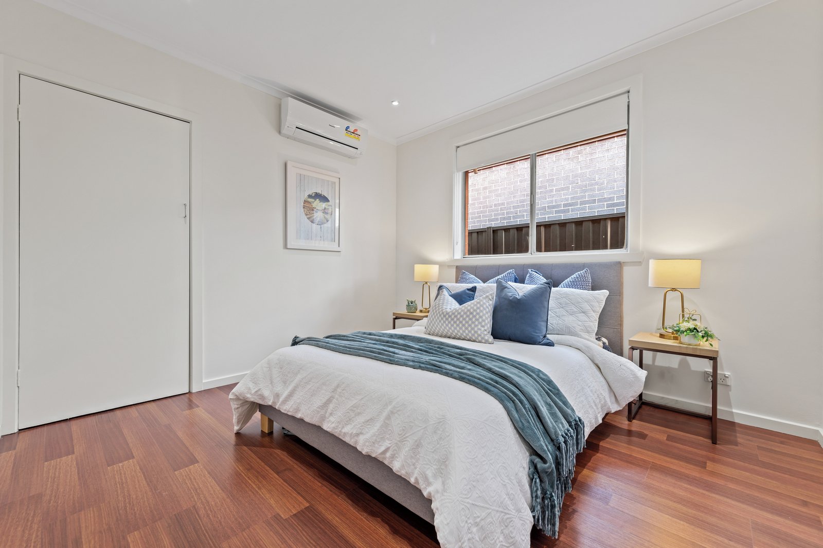 All three bedrooms are of generous proportions - two have the convenience of built-in storage. They share a fully-tiled bathroom with floating vanity, along with a separate WC, while a full laundry is also included, along with split system heating/cooling units in all principal rooms.