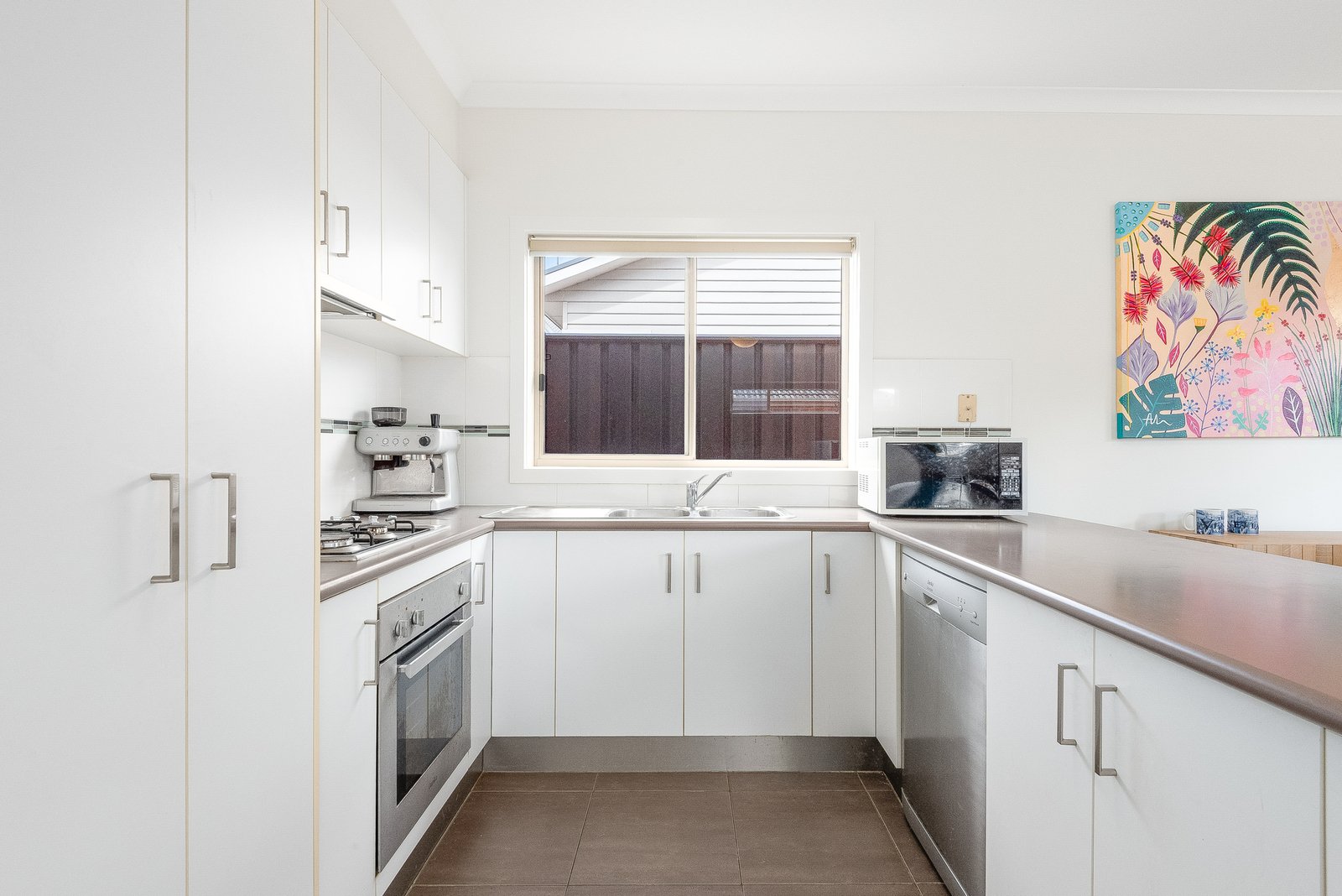 To the rear, the light-filled open plan kitchen, dining and living area features split system heating and cooling for year-round comfort. The quality kitchen features modern appliances including electric oven, gas cooktop, dishwasher, and excellent storage provisions. Positioned to overlook the dining area and rear deck, the layout caters for easy everyday living, and effortless indoor-outdoor entertaining.