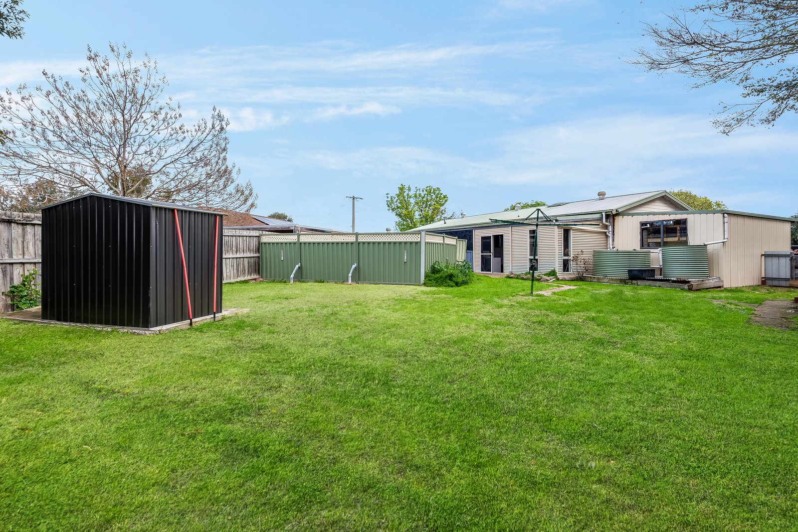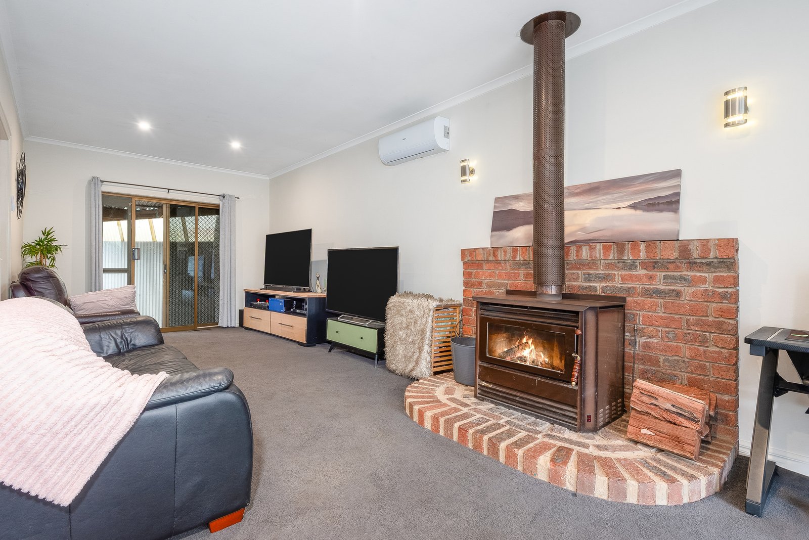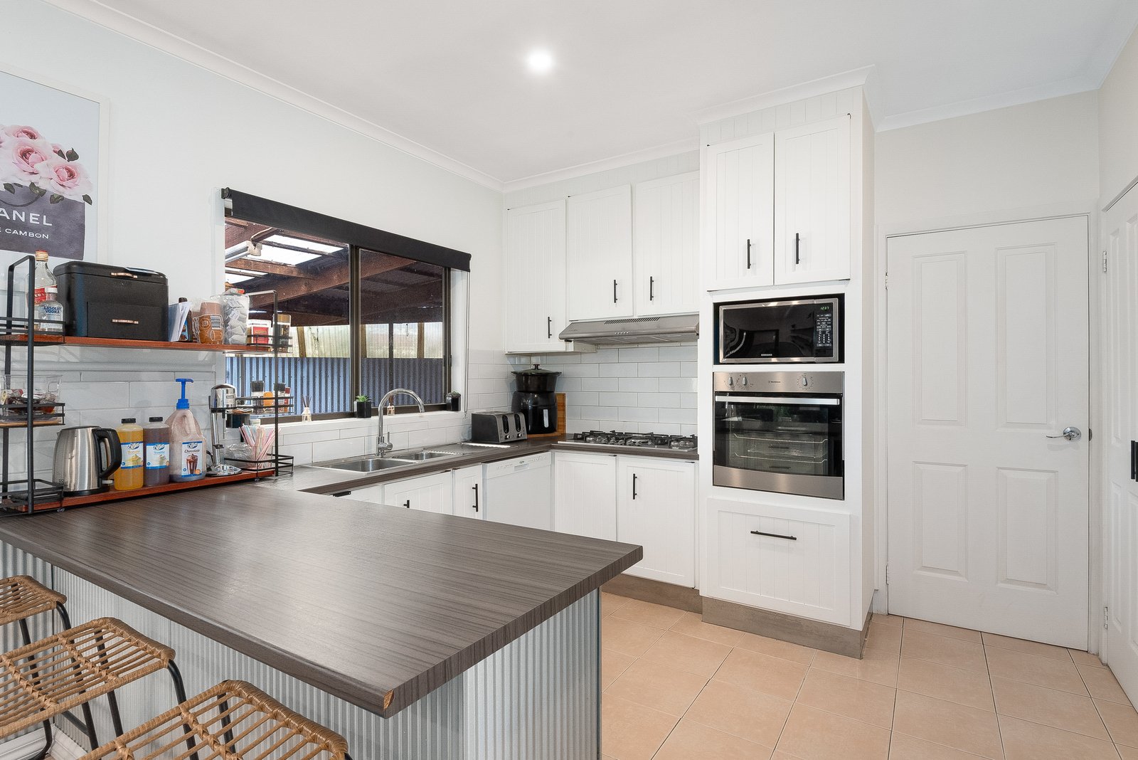 Set behind a picket fence and established gardens, the home presents a welcoming charm. A long veranda offers the perfect space to relax with your morning coffee, with outdoor blinds for additional shelter. Off the entry, an inviting lounge features a woodfire heater for a cosy ambience, along with split system heating and cooling, ceiling fan, and ducted heating for comfortable living all year round. At the heart of the home, the updated kitchen features modern cabinetry, quality appliances including 600mm oven, 900mm gas cooktop, dishwasher, classic subway tile splashback, and generous storage. Positioned to overlook the dining area and out to the alfresco, entertainers will love the layout of this space.