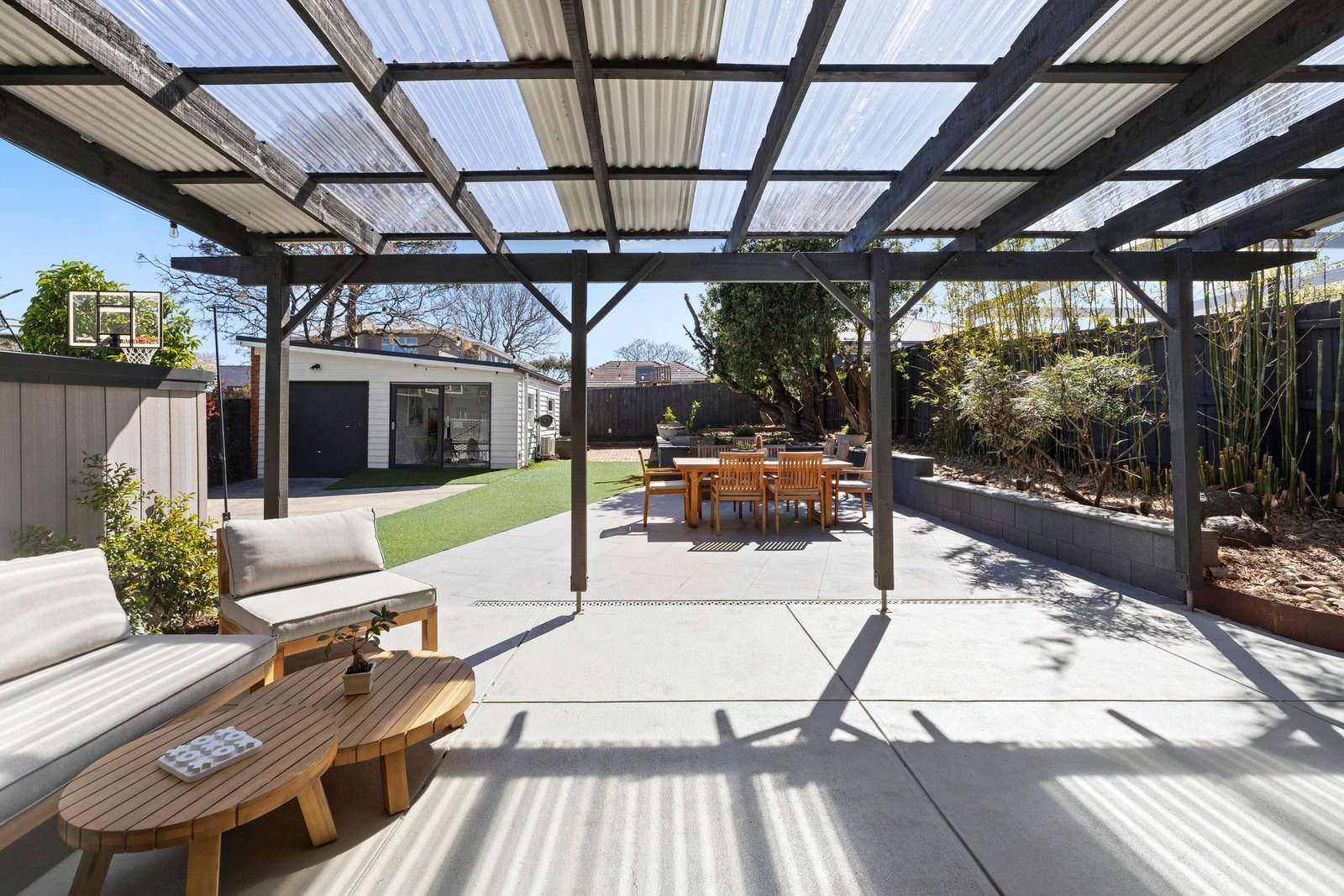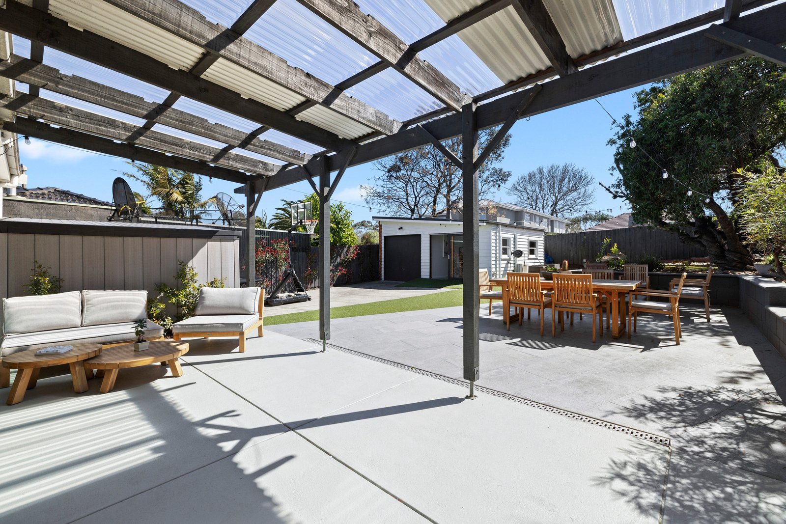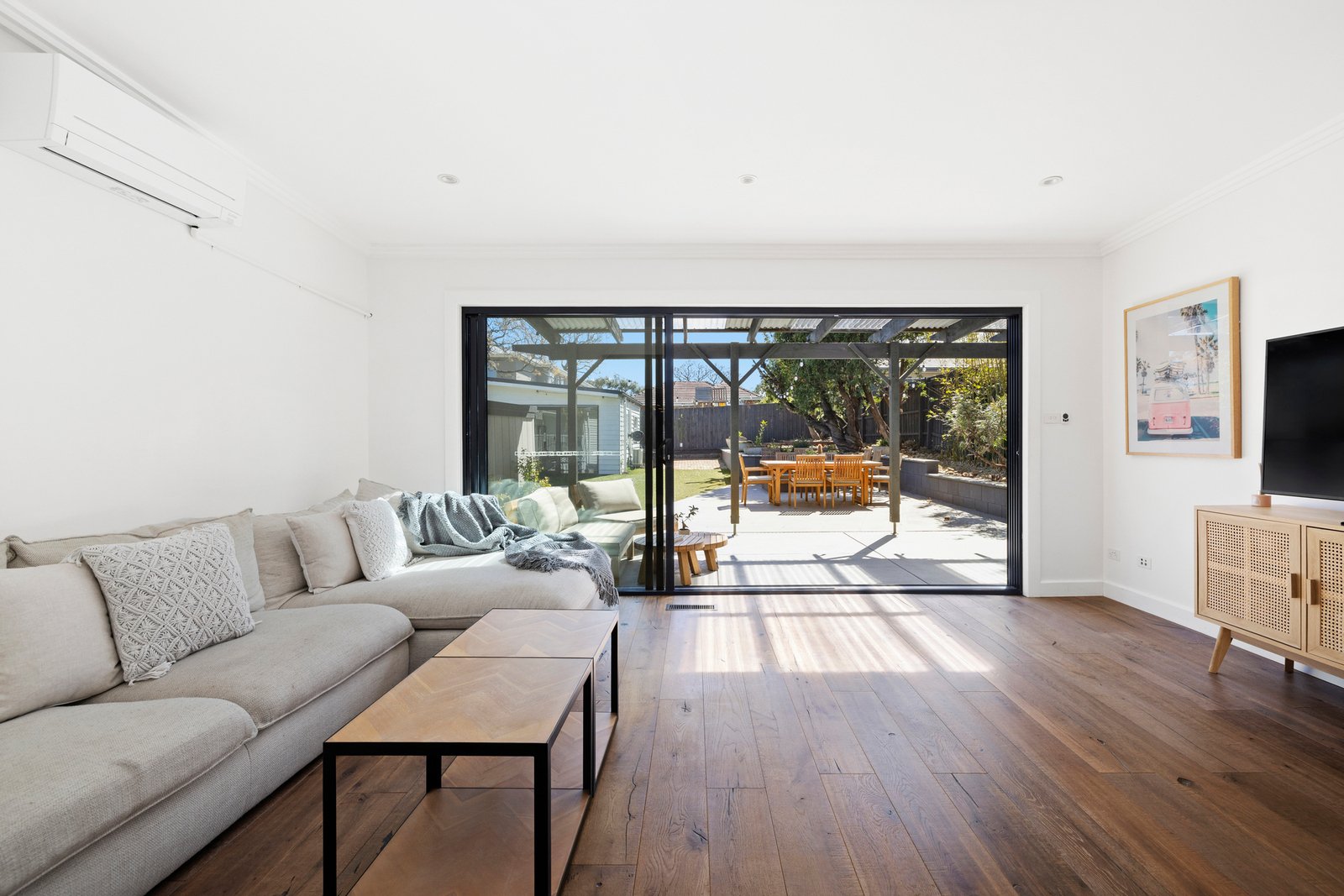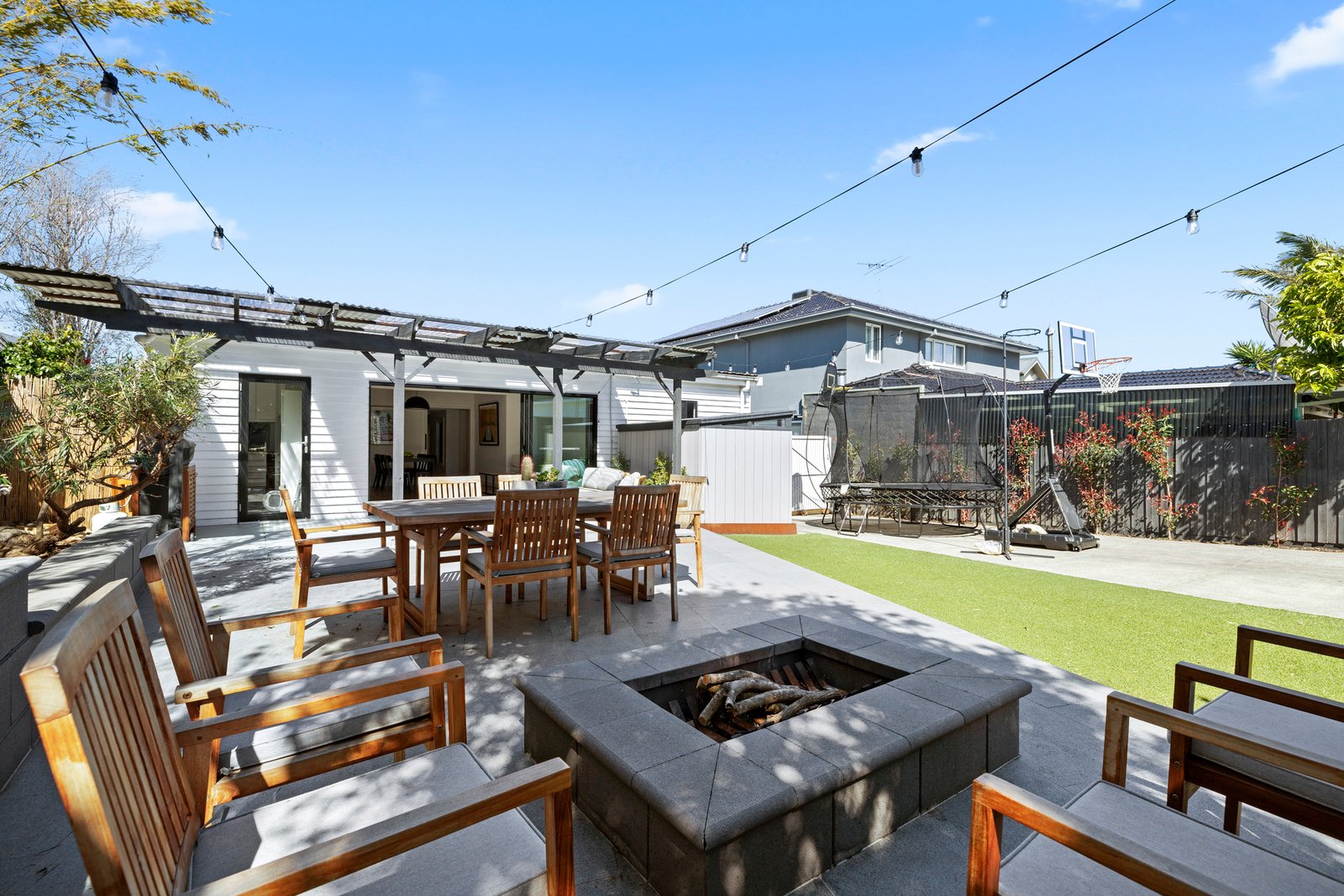 Drenched in sunshine, the generous alfresco patio extends the living out into the fresh air and features a cosy built-in firepit zone for cold winter nights.