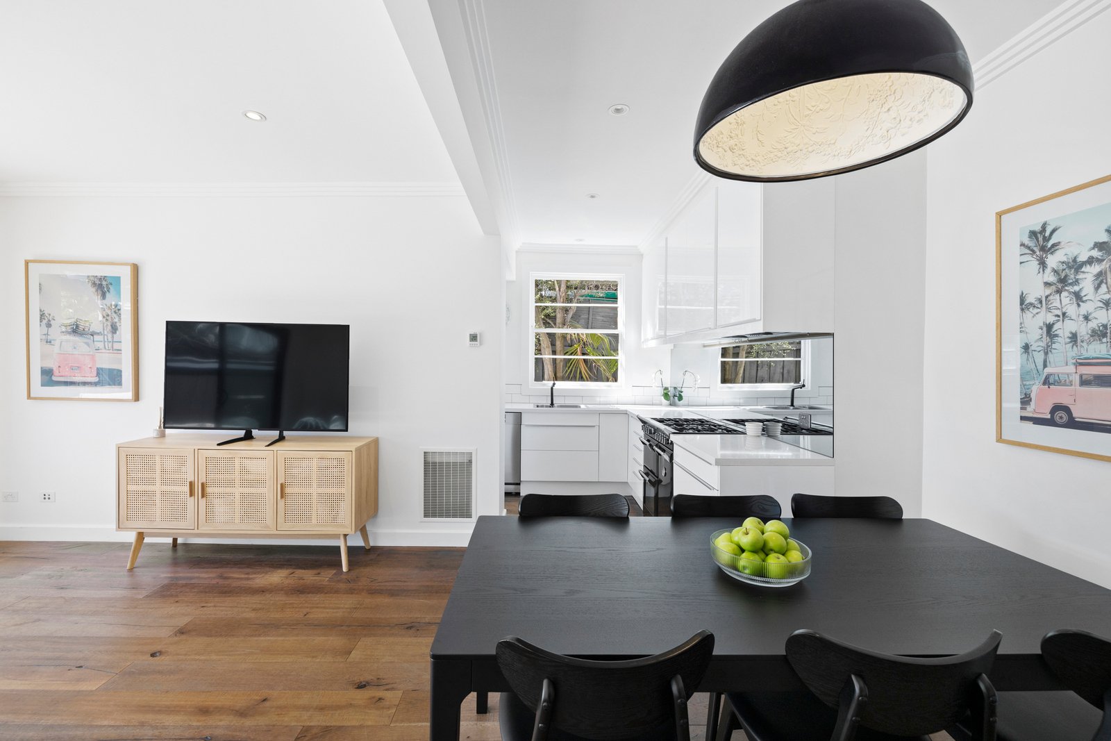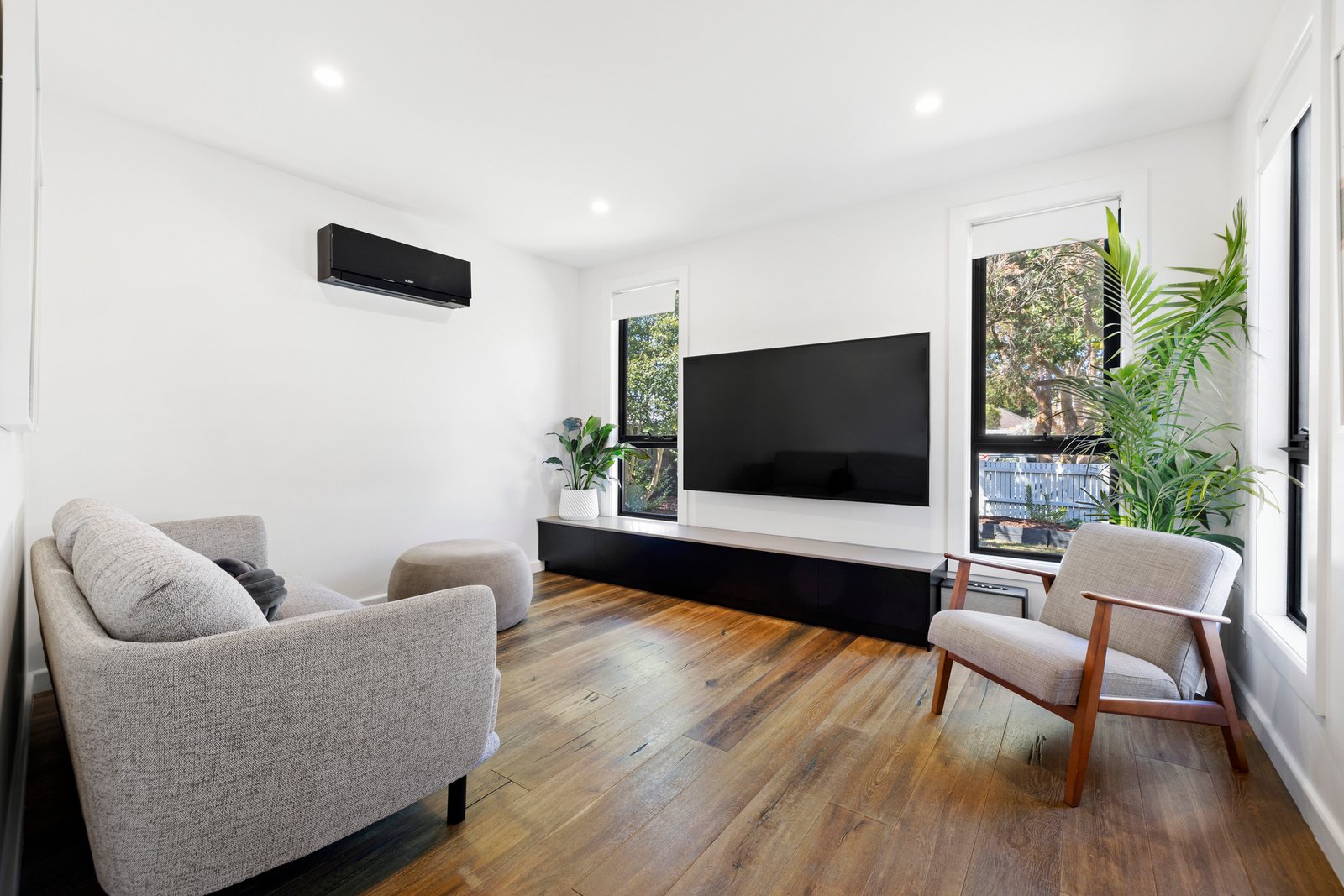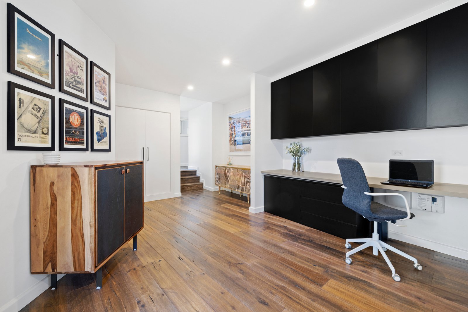 Beautifully presented from start to finish, the interiors are very liveable with a versatile lounge/TV room to the front boasting a built-in entertainment unit and views to the leafy garden. Flowing through a desirable study zone with more fitted storage, the layout steps up to the open plan entertaining area providing a light-splashed setting for relaxation and gathering with loved ones.