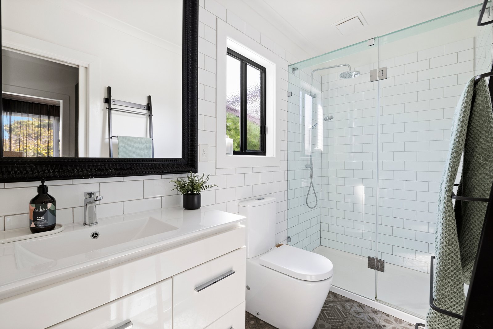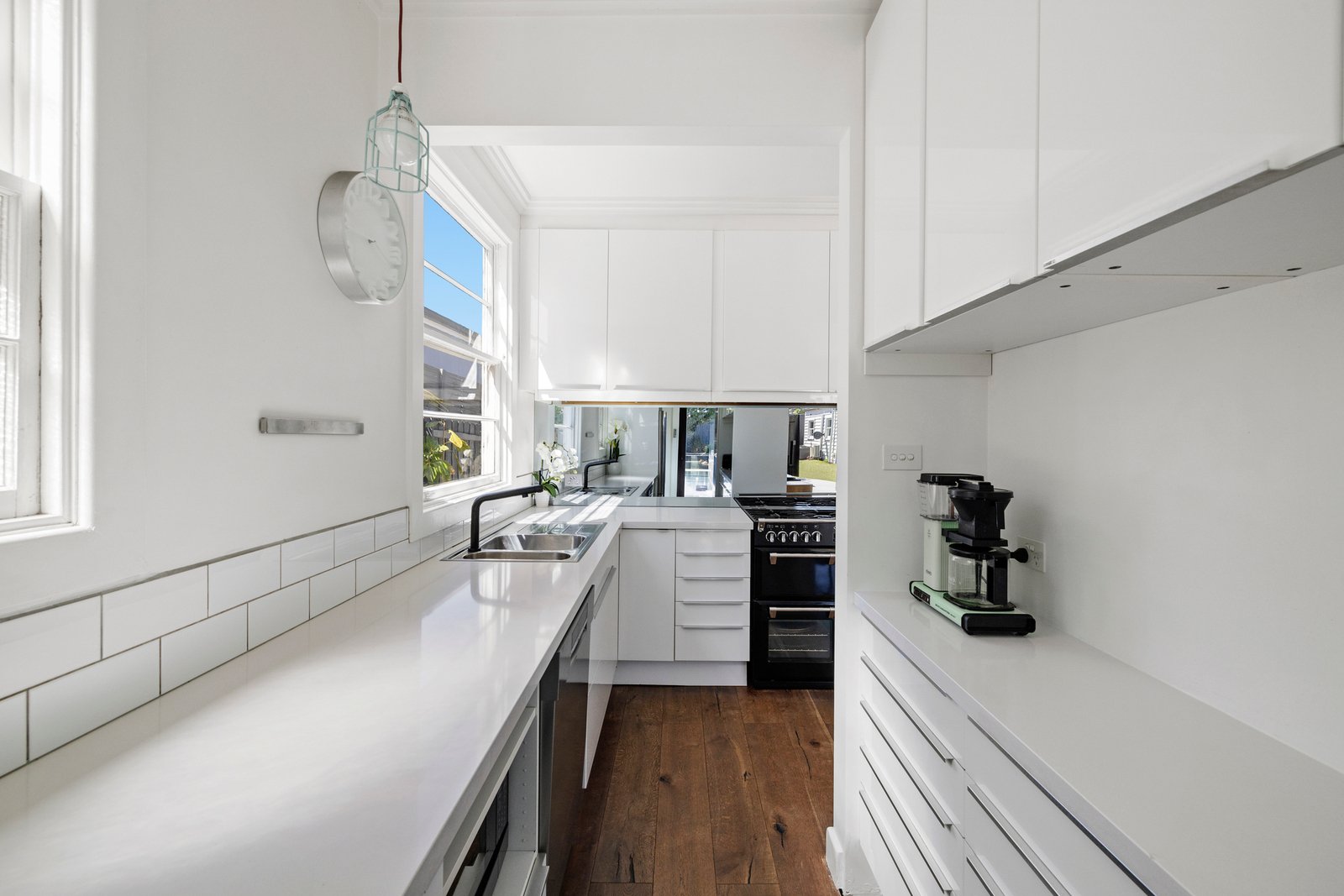 With stone benchtops and a mirrored splashback reflecting the natural light, the kitchen showcases a prestige Beling oven and as-new Bosch dishwasher – offering ample storage space, there is also a walk-in pantry area and laundry zone that offers convenient outdoor access.
