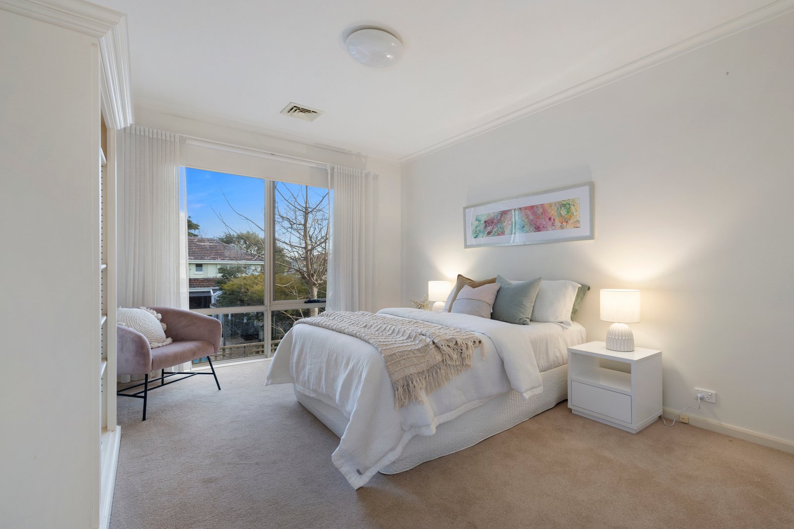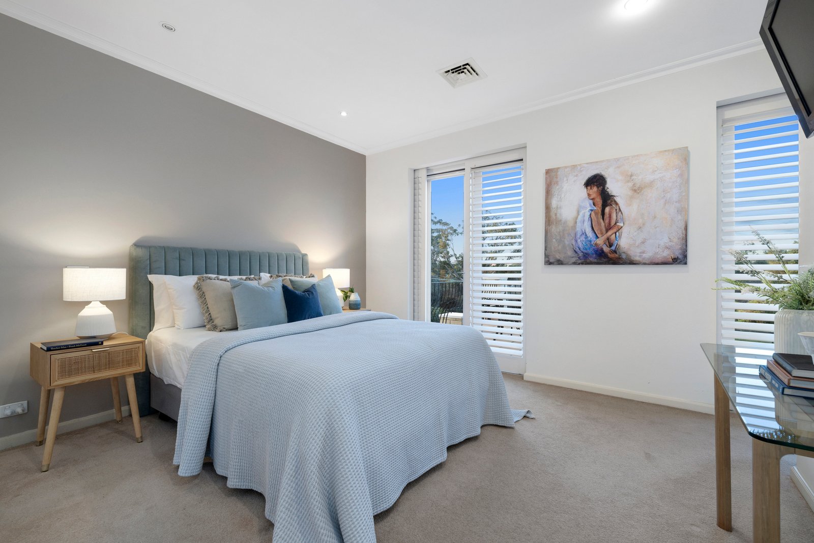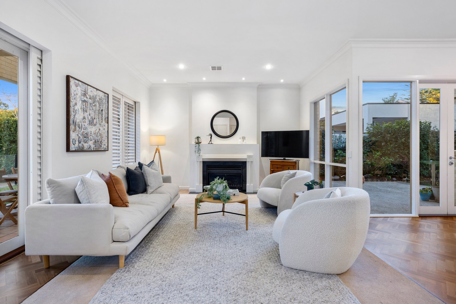 Classic by design with airy plantation-shutters enclosing lofty up to 3m-ceilinged spaces, freshly-polished parquetry floors meeting plush carpets, and bonus auto-awnings to soften the morning sun, this climate-controlled and alarmed home showcases refined architectural detail with a dual-vanity spa-ensuite for the treetop master, built-in or walk-in robes for each bedroom, a glowing gasfire for the formal zone ...and a curvaceous stair at the centre of it all.