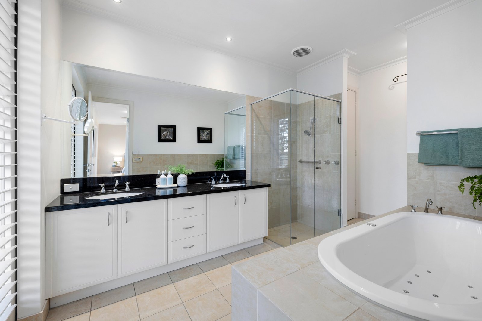 Set in manicured grounds with 5-car auto-gated parking, there’s a double garage with through-access for boat, van or trophy car, a quiet citrus garden with artist-crafted water-feature for breakfast in the sun, and the sparkling dual heated pool and fully-tiled spa for long summer days.