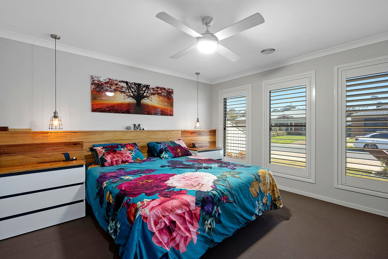 The home features three oversized bedrooms master with walk-in robe and ensuite, while the remaining two include built-in robes and ceiling fans. A central 3-piece bathroom and a stylishly updated laundry with extensive bench and cupboard space add to the home's appeal.