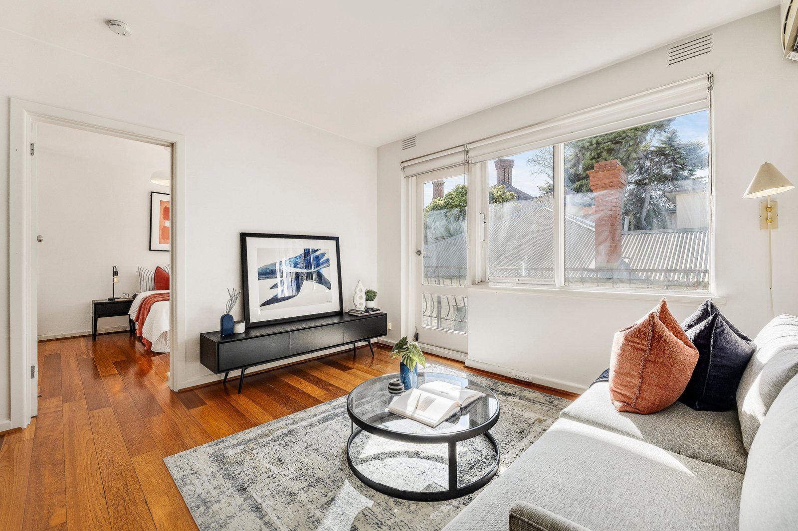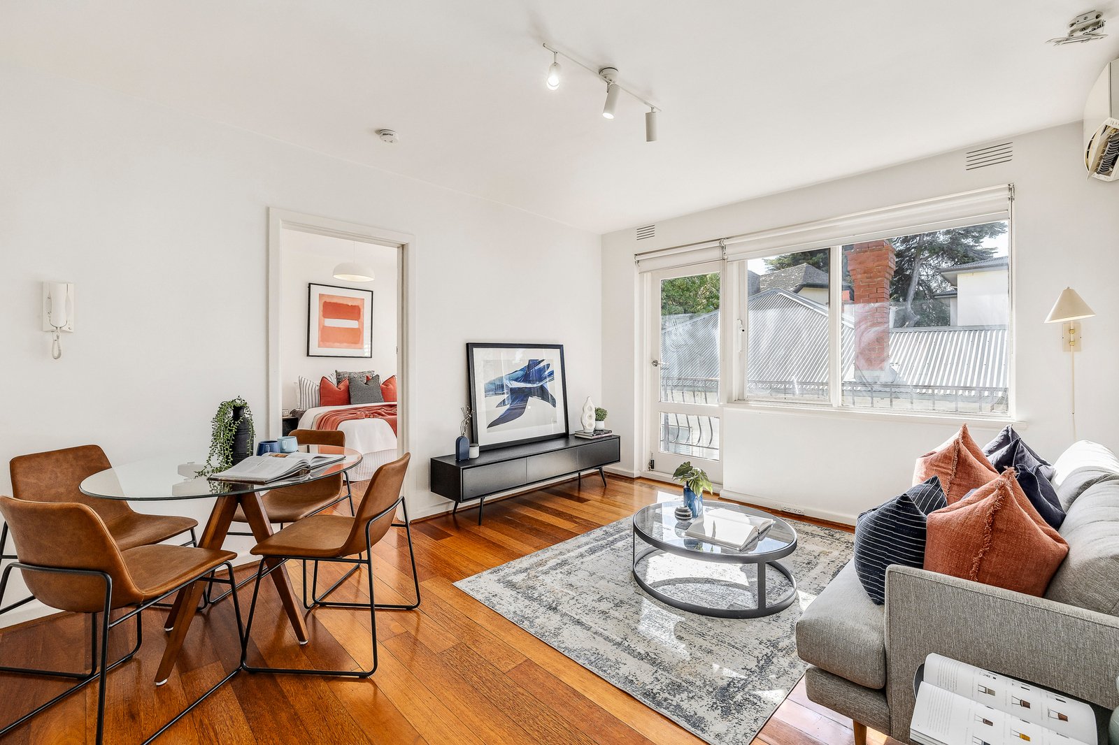 Full of sunshine and charm, this two-bedroom first-floor apartment offers stylish, comfortable living in a whisper-quiet position, just moments from the best of Elwood, St Kilda and Balaclava. Set in a secure, well-maintained 1960s building of only twelve apartments, it features a north-facing living and dining area with leafy, tranquil outlooks....