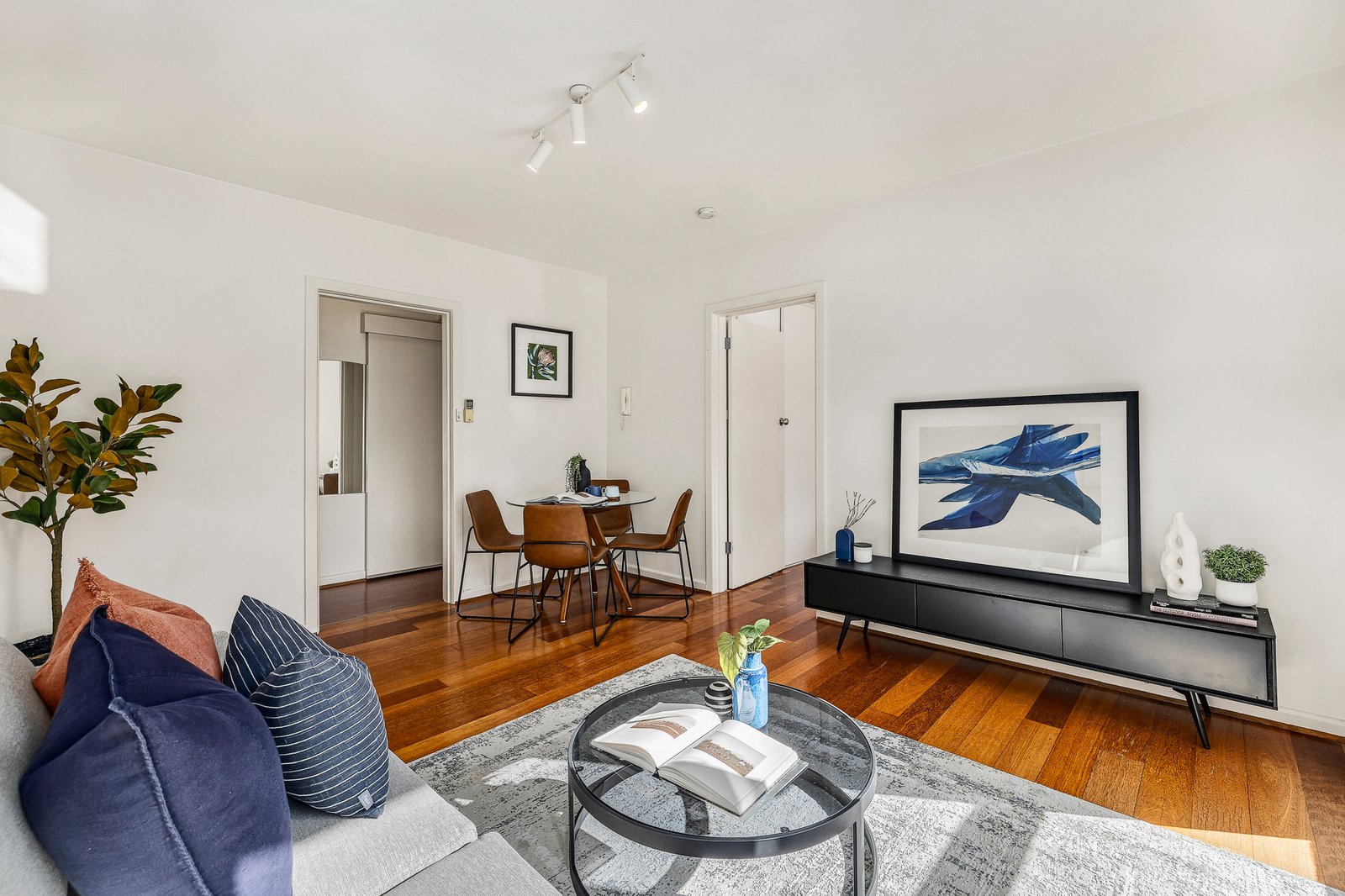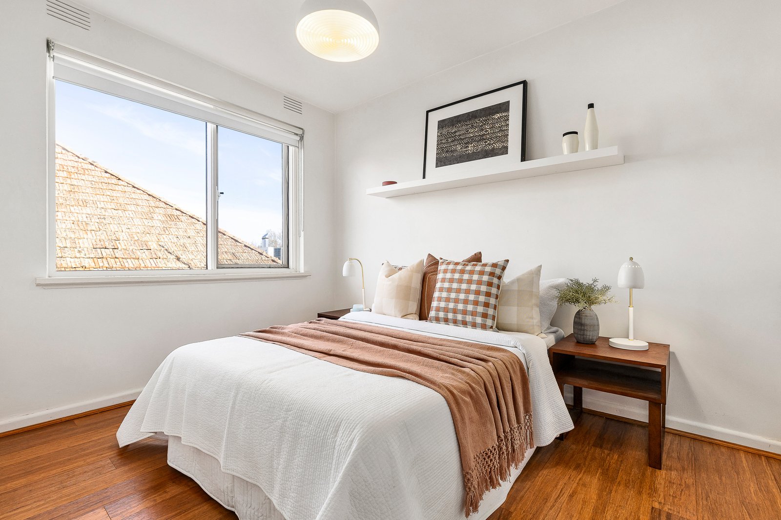 Full of sunshine and charm, this two-bedroom first-floor apartment offers stylish, comfortable living in a whisper-quiet position, just moments from the best of Elwood, St Kilda and Balaclava. Set in a secure, well-maintained 1960s building of only twelve apartments, it features a north-facing living and dining area with leafy, tranquil outlooks. An inviting broad balcony with decorative iron railing is perfect for breakfast, coffee catch-ups or quiet reflection.
