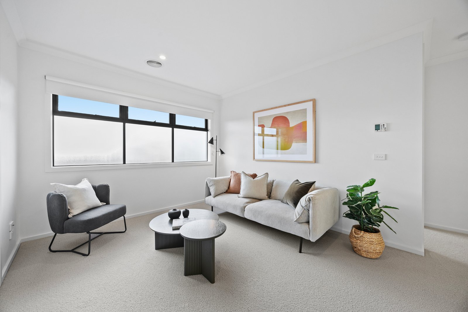 Designed for modern living, the ground floor offers a flexible bedroom with ensuite, a private study, and a spacious laundry. The heart of the home—the kitchen—boasts a walk-in pantry, stone benchtops, and double oven, flowing effortlessly into open-plan living and dining spaces. Step outside to a sun-drenched deck and beautifully landscaped, fully irrigated gardens, perfect for relaxed entertaining or quiet family mornings.