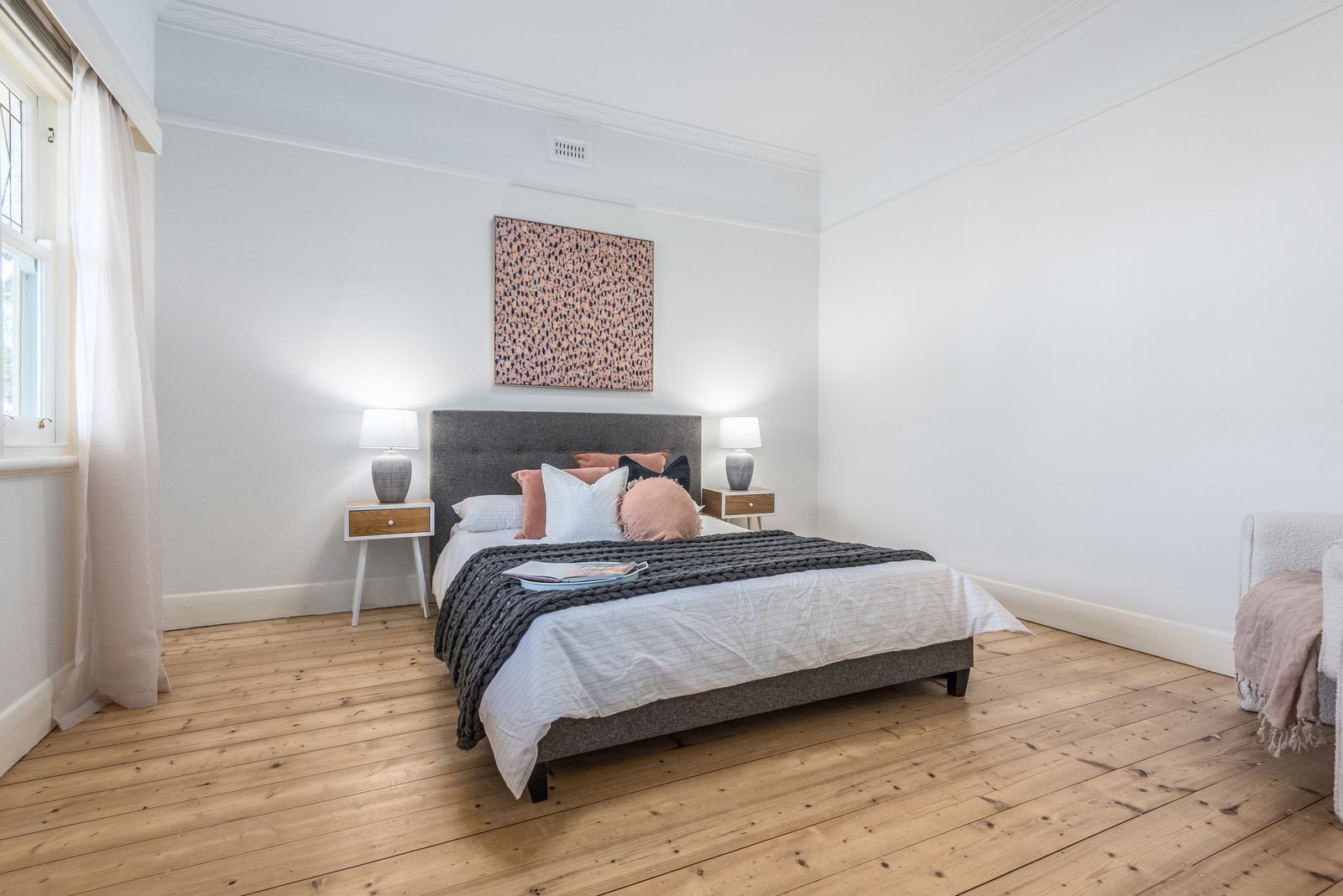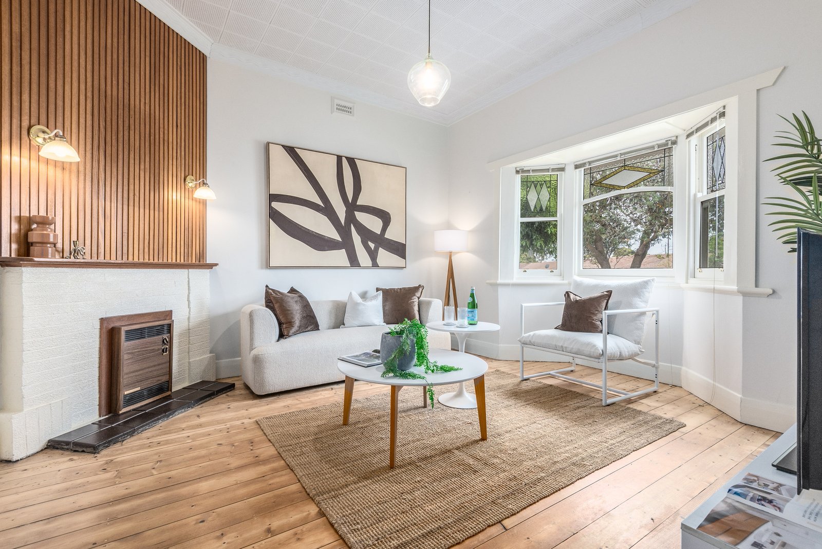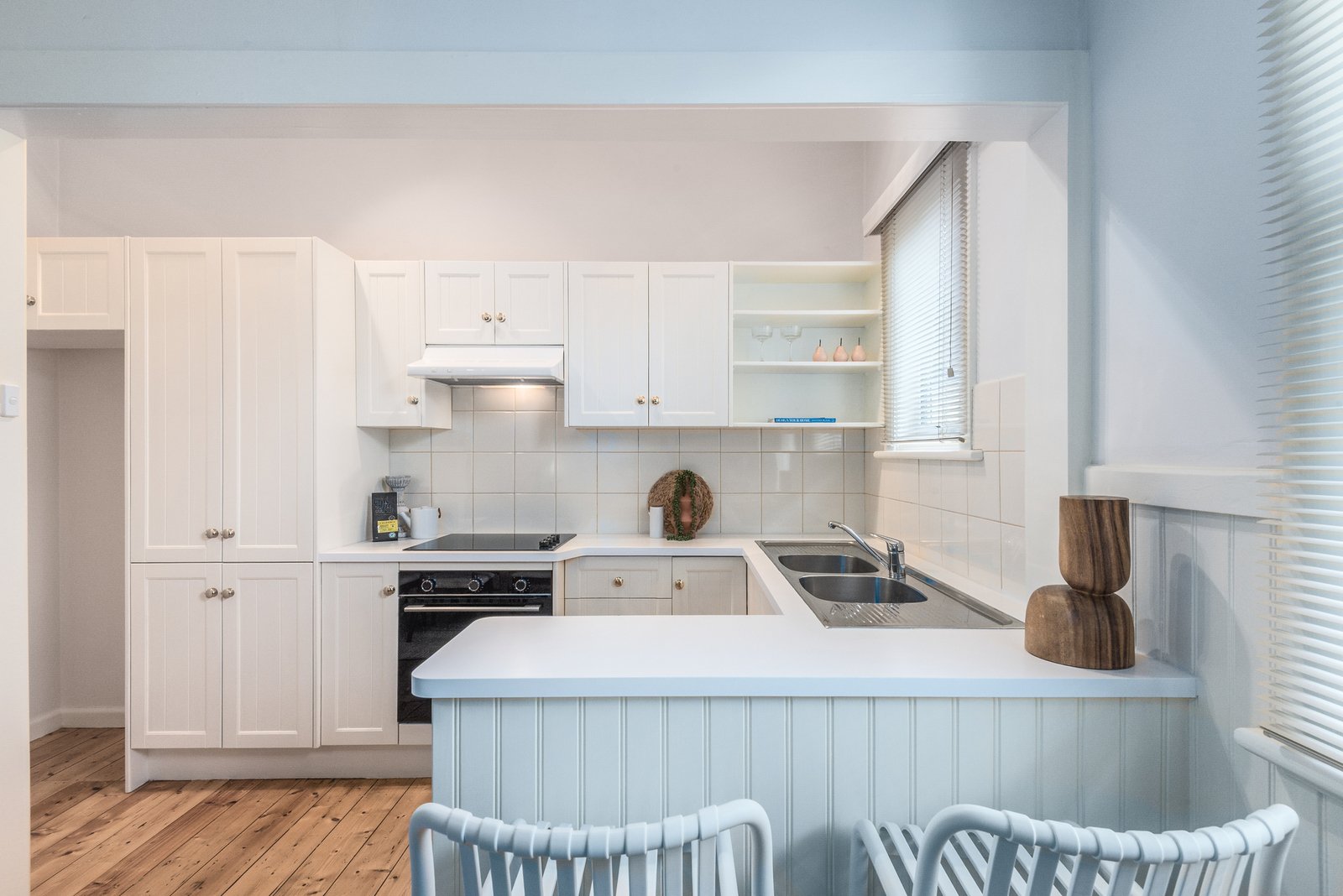 Set behind a picket fence, the character façade and grand verandah are timeless in appeal. Inside, high ceilings, picture rails and polished timber floors introduce the elegant theme of the interiors. Off the entry, a formal lounge features an original mantel and timber feature wall with sconce lighting, along with a beautiful bay window with leadlight panels, offering a sophisticated room to retreat. At the heart of the home, the dining room feature dado walls, a fireplace, and ambient pendant lighting, adjoining a well-appointed kitchen with shaker style cabinetry, modern 600mm electric oven and cooktop, and generous storage, providing a functional space for everyday living and easy entertaining.