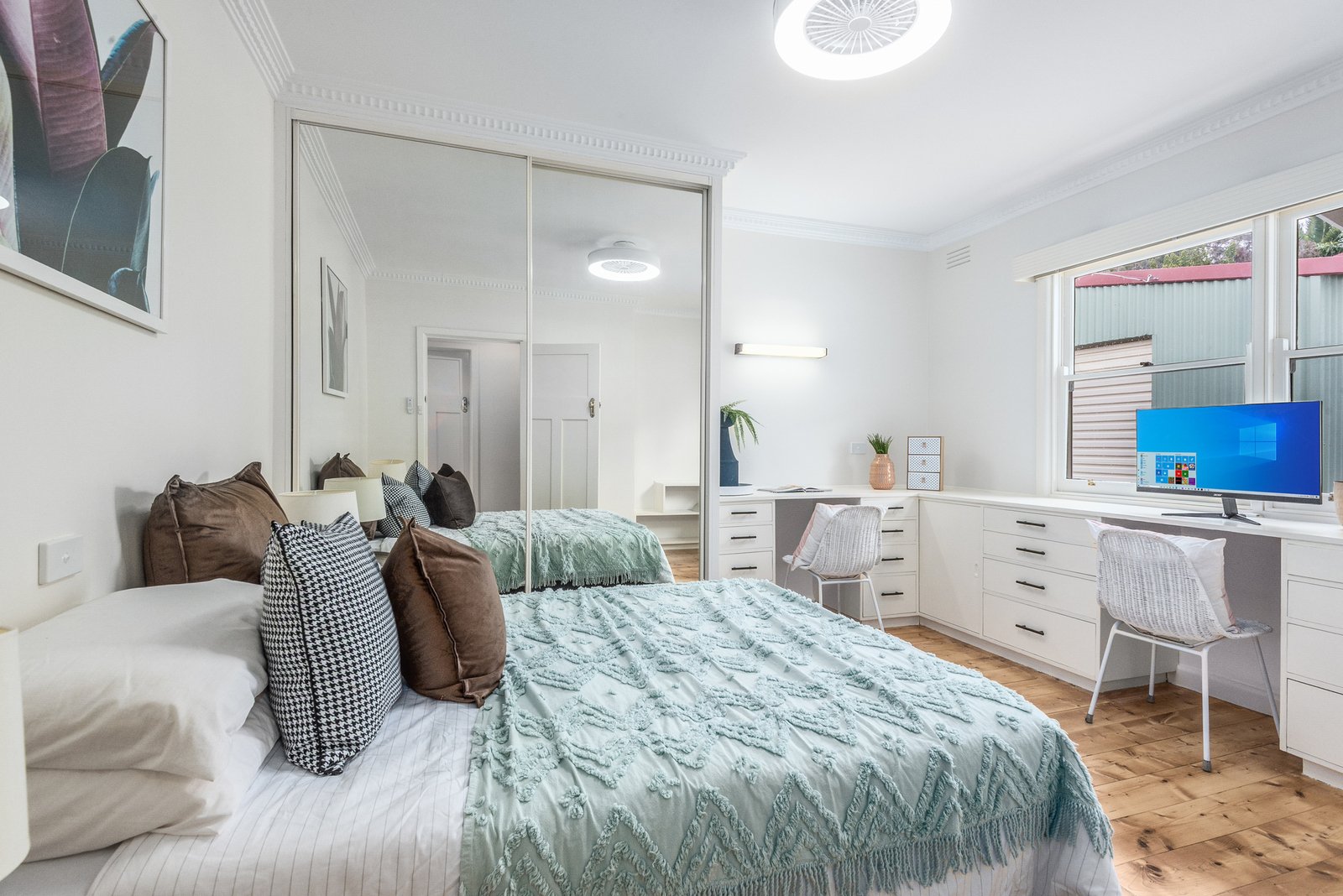Comprising three spacious bedrooms, two include built-in robes, bedroom three also includes built-in desks, offering versatility for those who work from home. A bright central bathroom, large laundry, additional wc and generous linen storage complete the well-functioning floor plan. Split system heating and cooling caters for your modern comfort, with all electric appliances throughout.