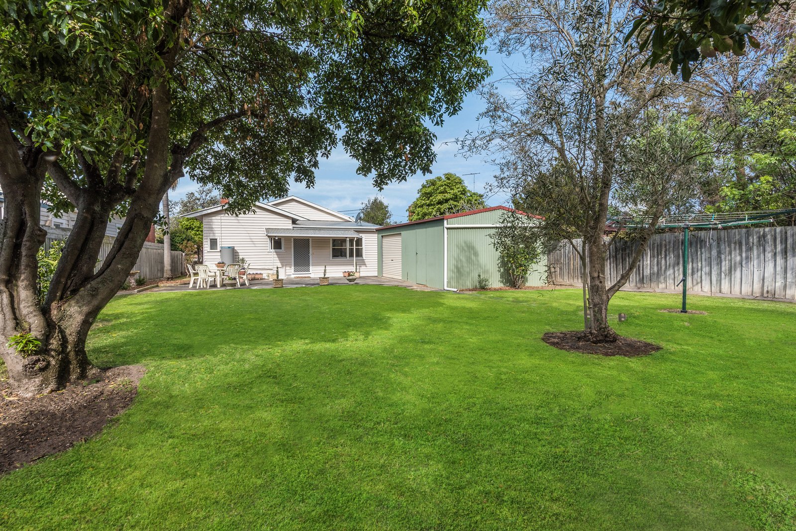 Outside, a paved entertaining area offers a private space to relax or entertain in the sun, and the large backyard provides ample space for the kids to play amongst established trees. The long driveway and garage accommodate excellent off-street parking.