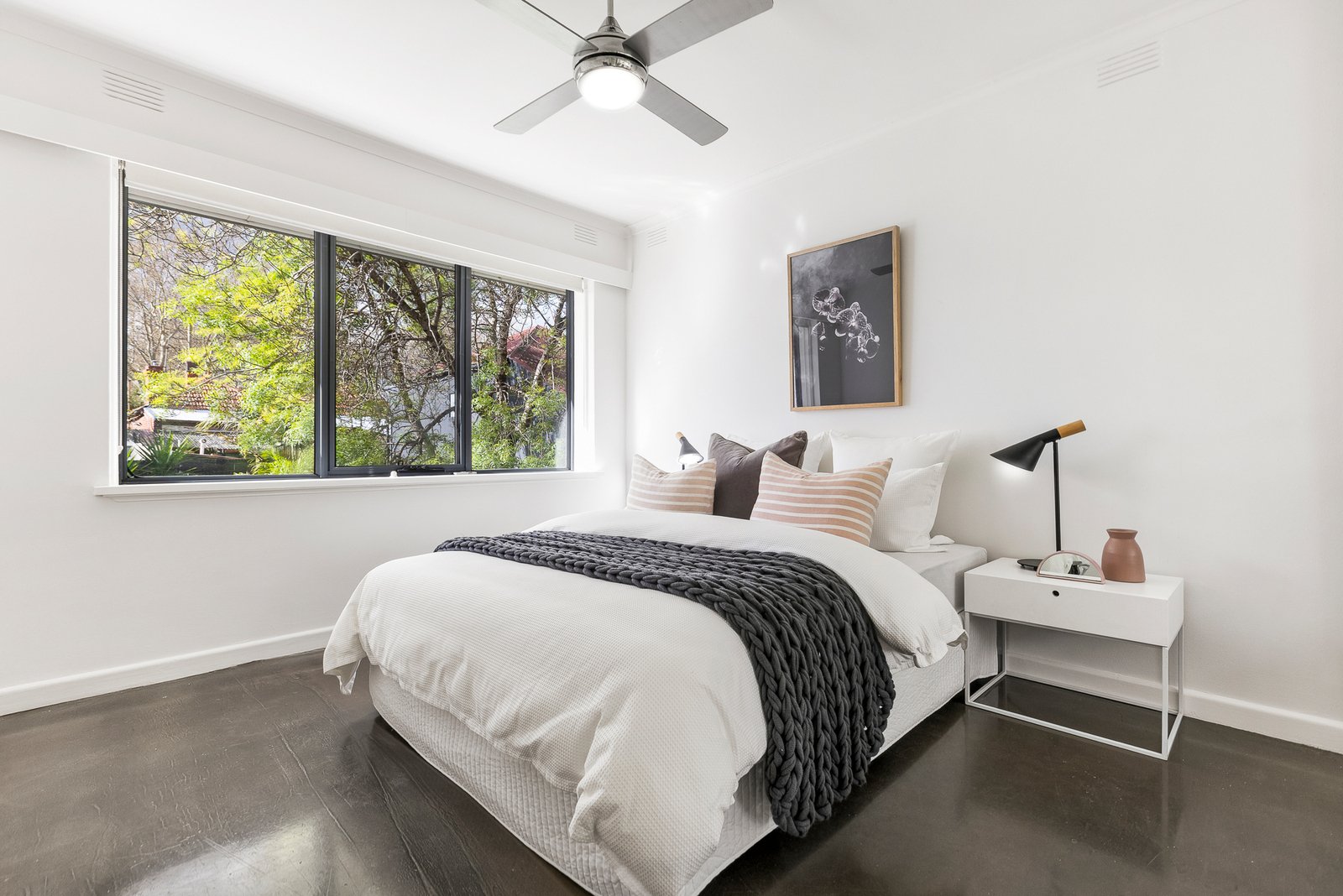 Positioned in its own peaceful, private domain, an impressively sized living/dining room shares the sun-filled northern outlooks with an oversized main bedroom boasting extensive BIRs/storage. At the rear, a second bedroom with BIRs enjoys its own tranquil outlooks complemented by a modern kitchen with gas hob, wall oven and abundant preparation and storage options. Further highlights include an appealing modern bathroom with shower over bath, split heating/cooling, polished concrete floors, intercom security and a solid brick building with secure off street parking.
