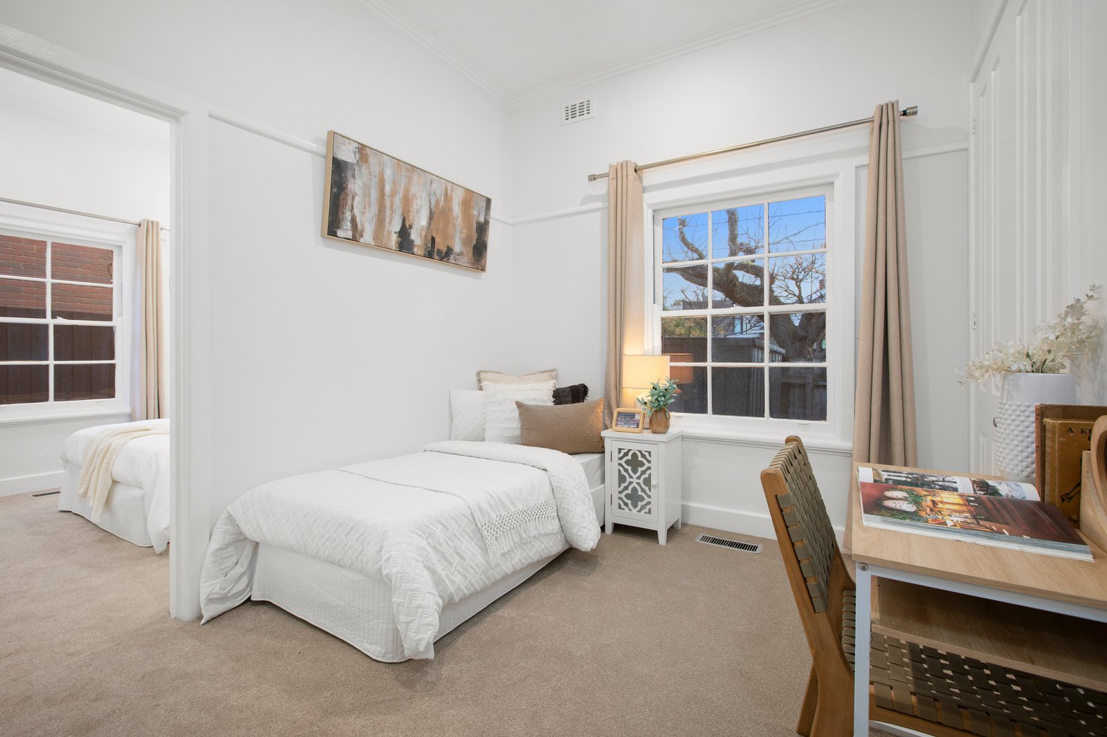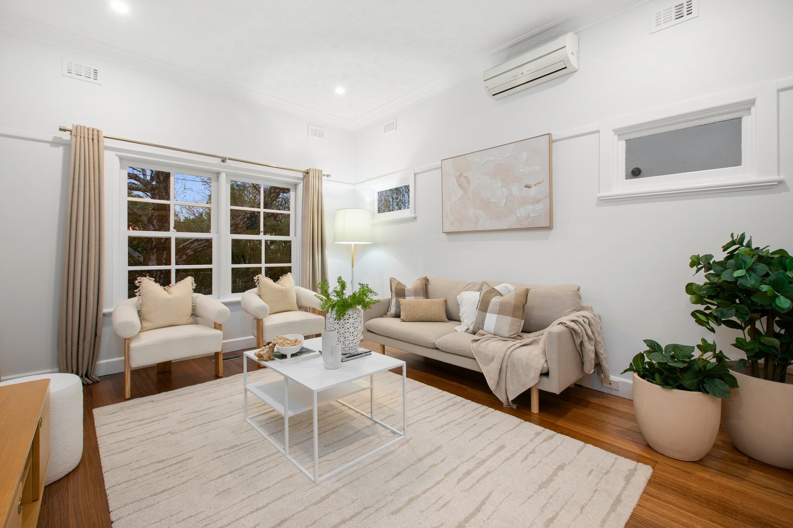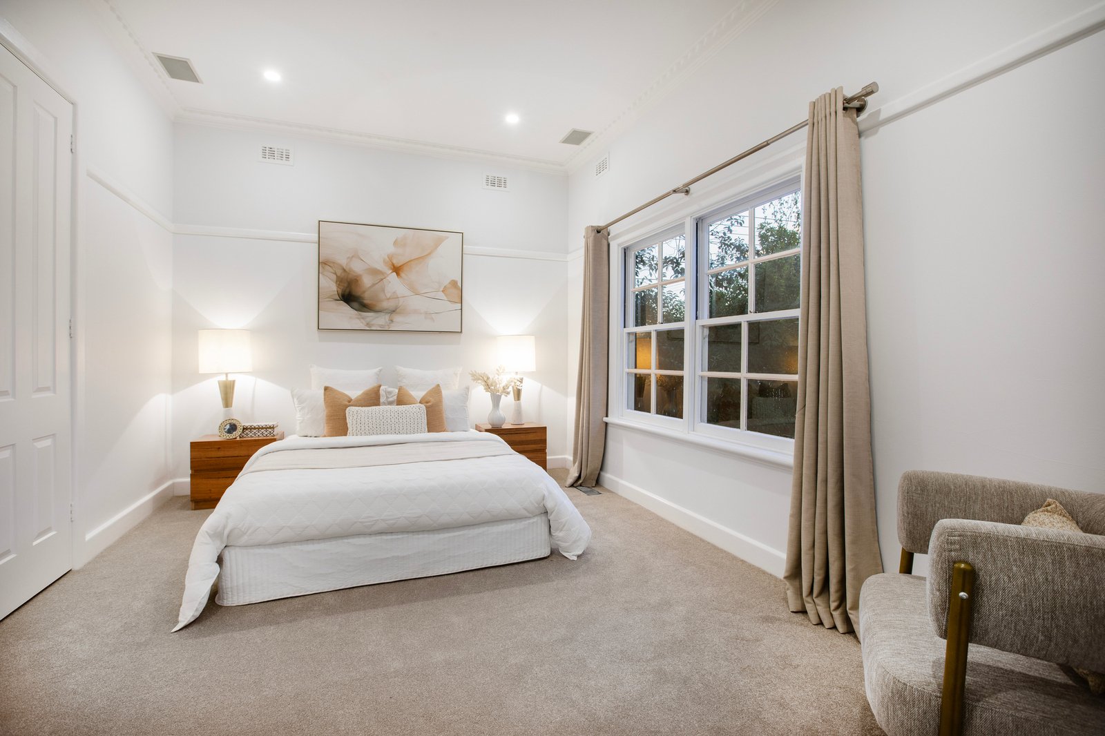 Updated outside with a contemporary new colour palette and with fresh paint, plush carpet and newly sanded floors inside all adding to the charm, the home’s interiors are brought to life by views to the tranquil garden outside.
