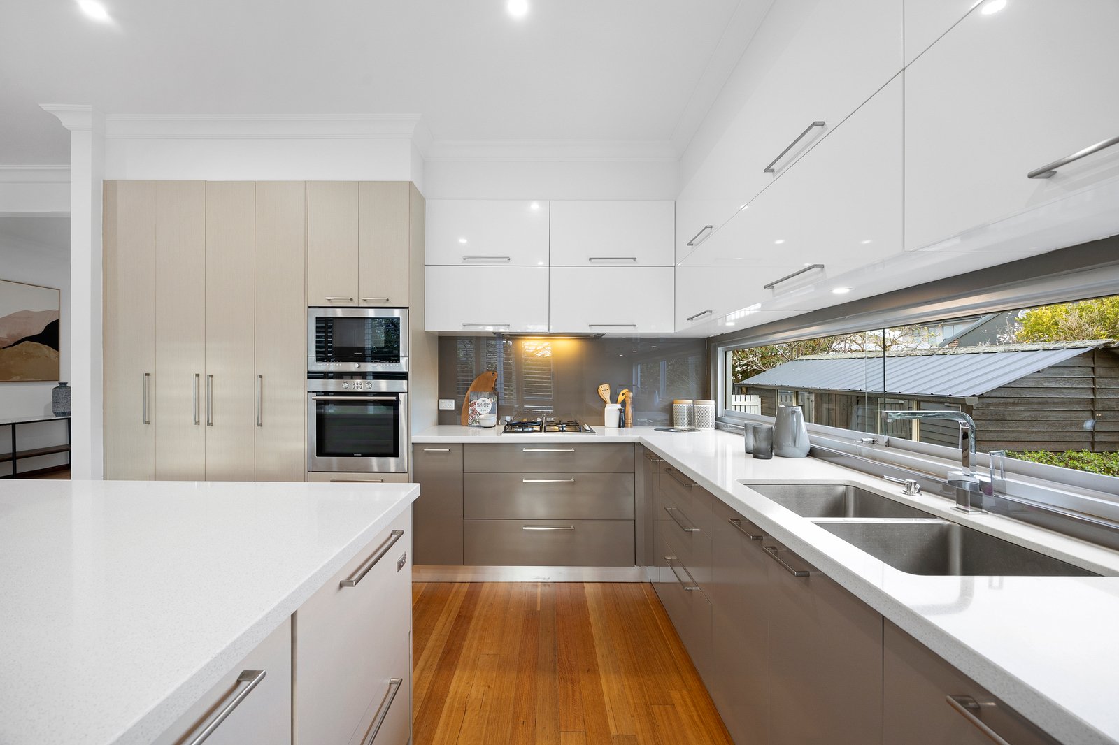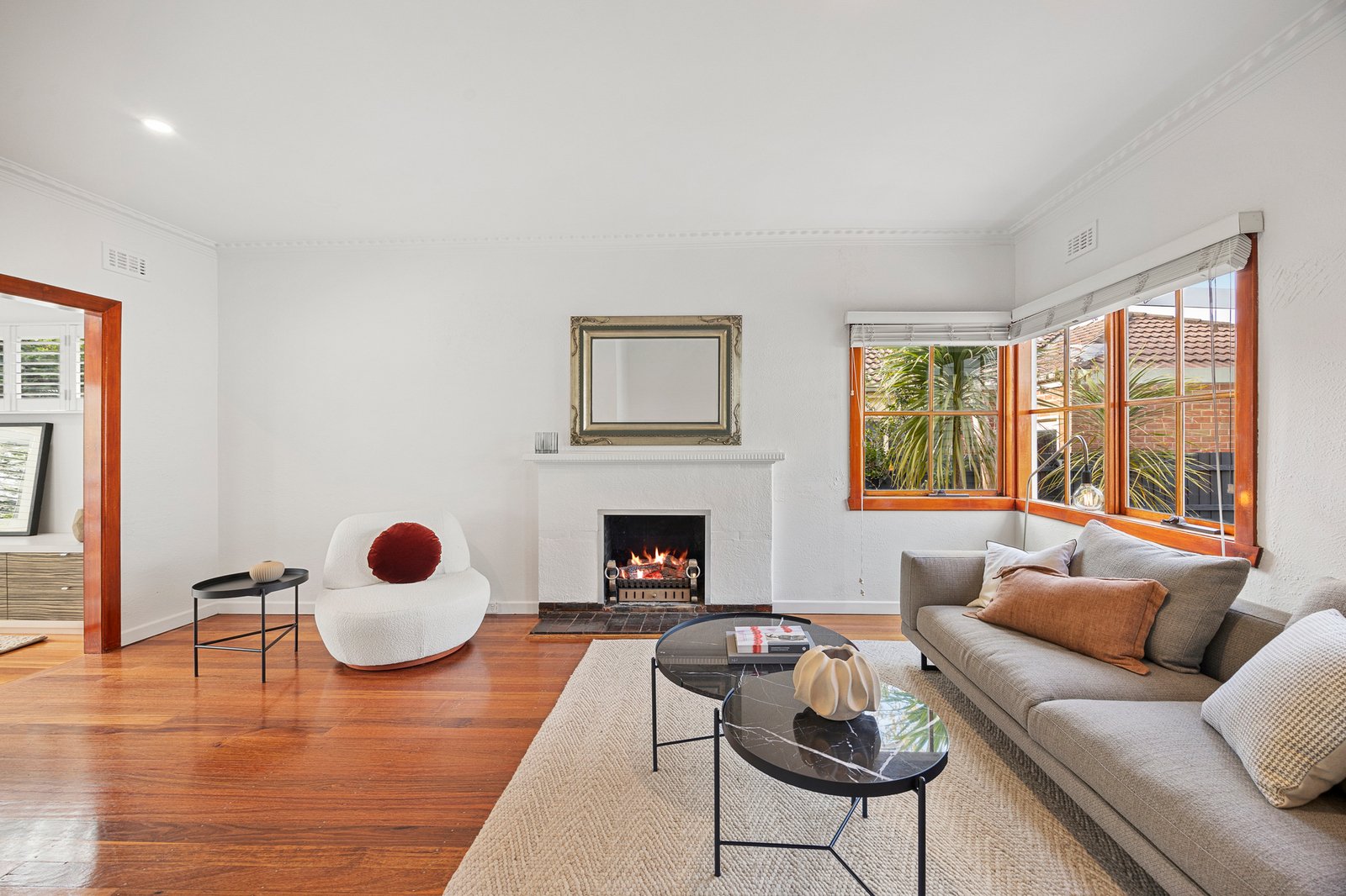 Designer-styled with a full suite of high-end appliances – including Siemens dual ovens and two separate drawer dishwashers – the state-of-the-art kitchen sits alongside original details that bring timeless appeal: warm hardwood floors, rich timber joinery, lofty corniced ceilings, and a feature fireplace mantle.
