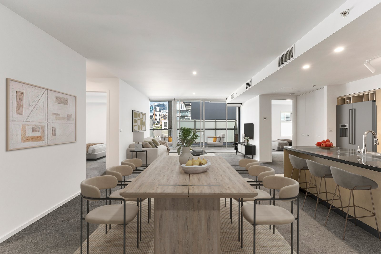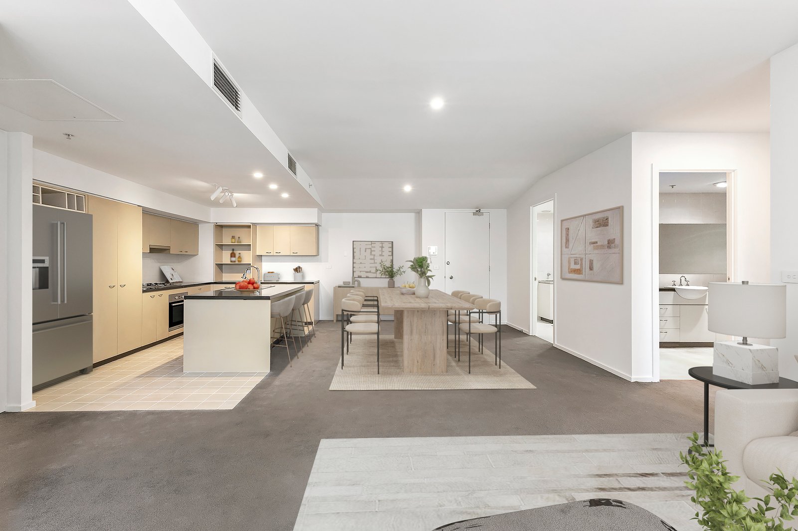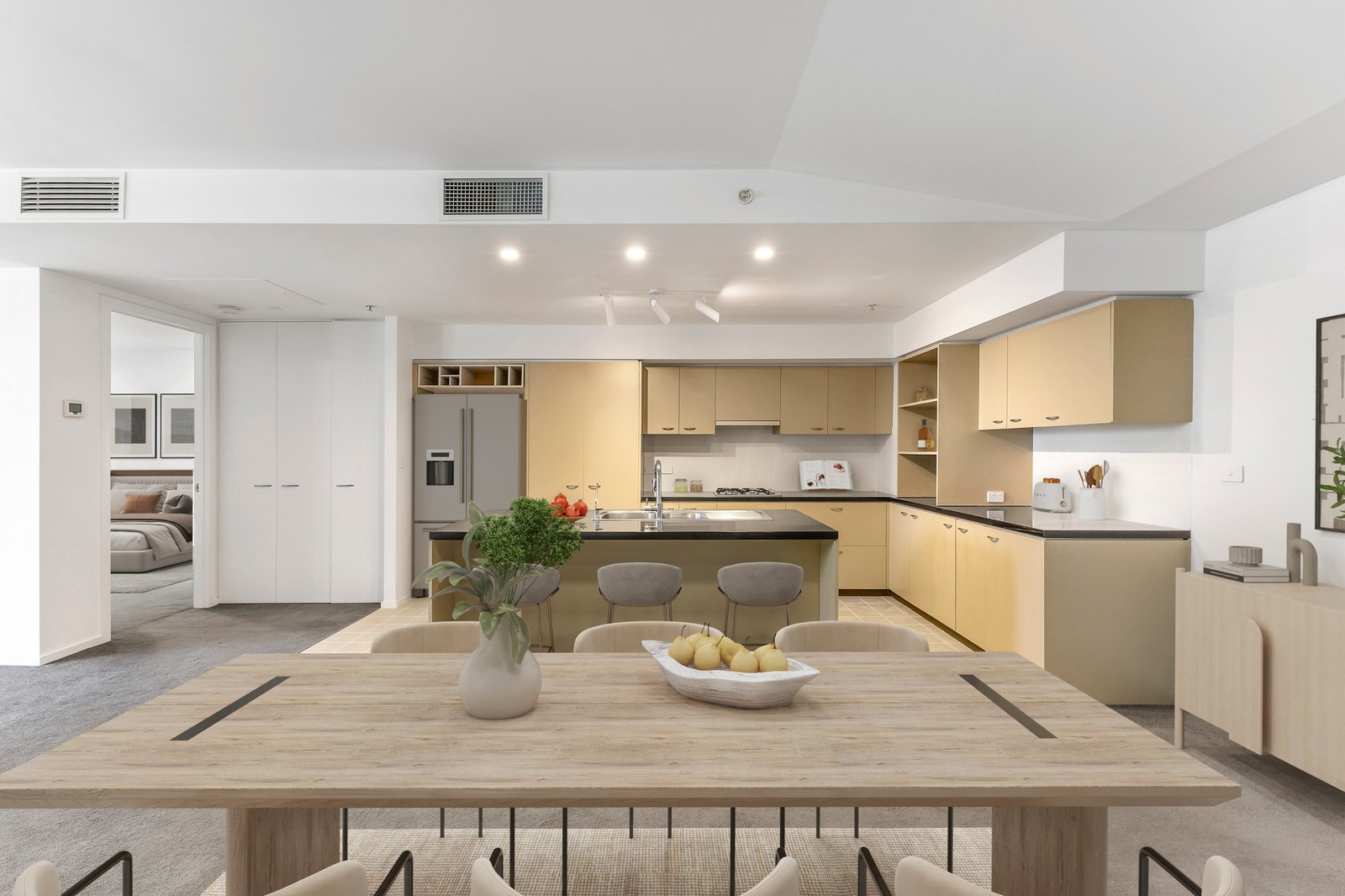 Designed with style and comfort in mind, the spacious open plan living and dining area is perfect for entertaining or relaxing. The gourmet kitchen features Bosch appliances, including a gas cooktop, oven, and dishwasher.