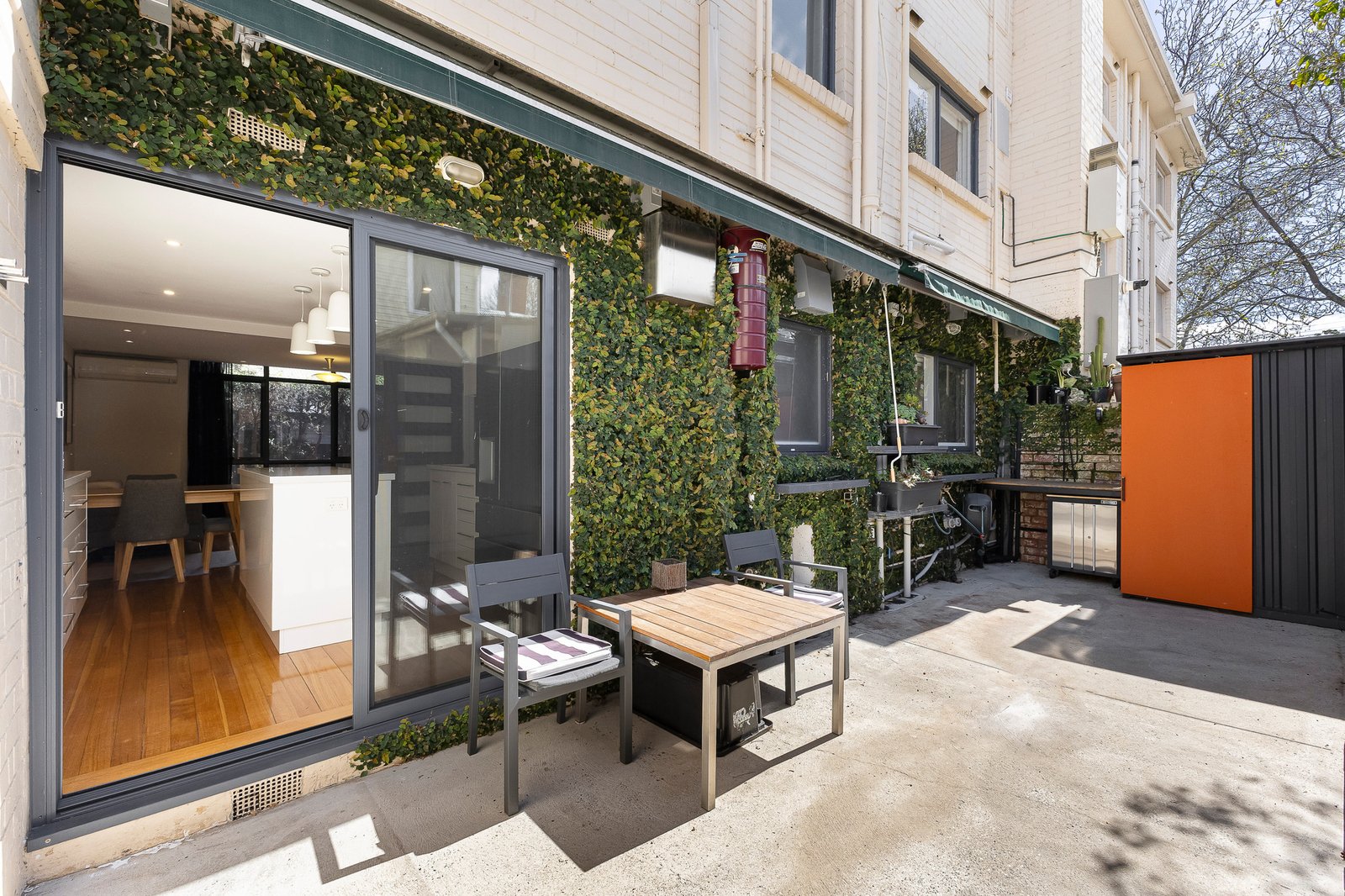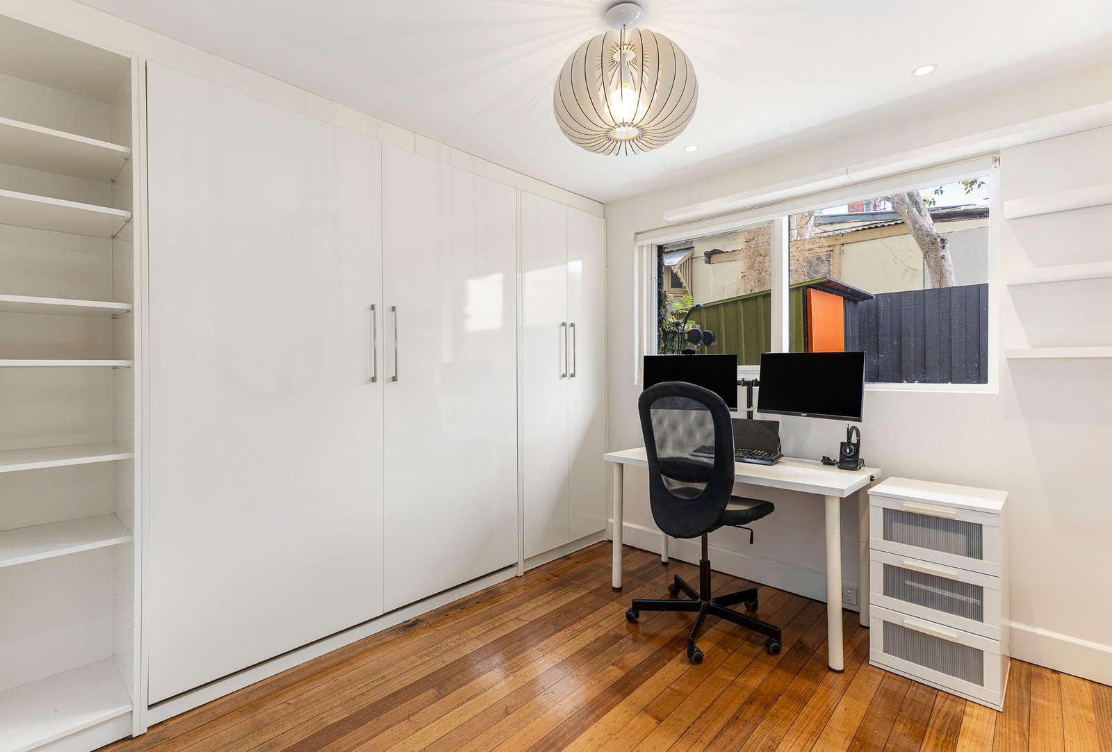 Both bedrooms include built-in robes, with the master enjoying reverse-cycle A/C and secondary featuring a smart fold-down bed, while a contemporary central bathroom serves in style. A generous courtyard with garden shed and direct rear access to the on-title car space provides rare outdoor appeal. Secure intercom entry adds peace of mind, while the unbeatable location places public transport and Glen Huntly Road’s cafes, shops and lifestyle amenities just moments away.