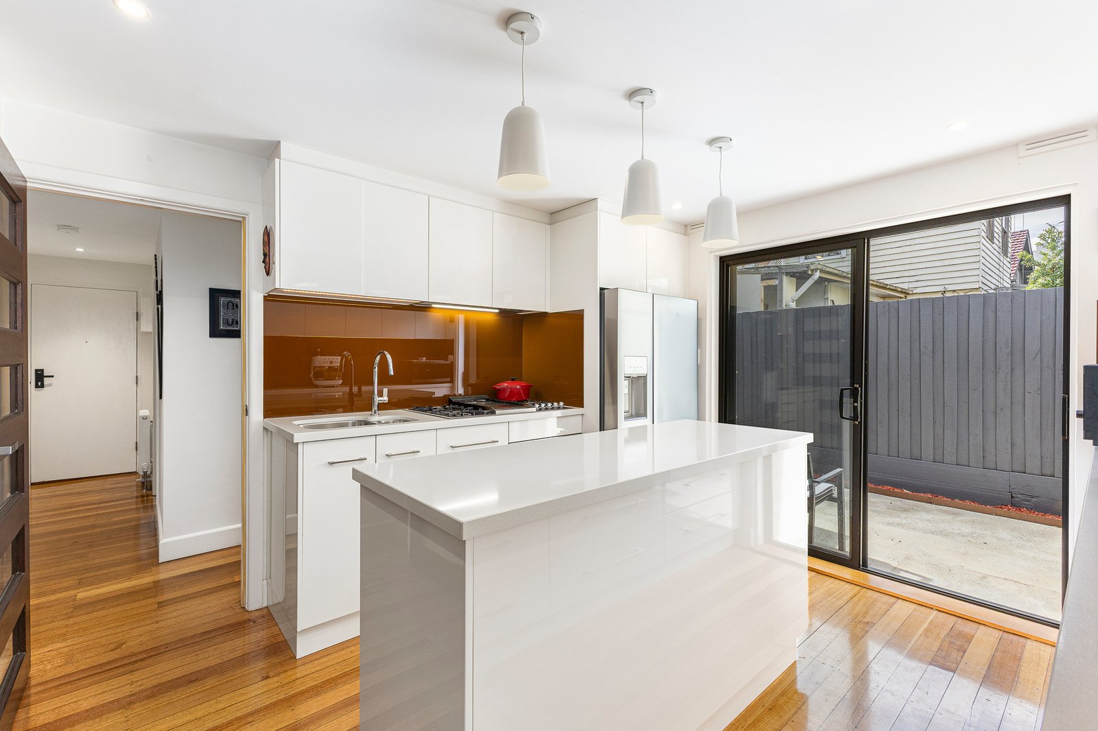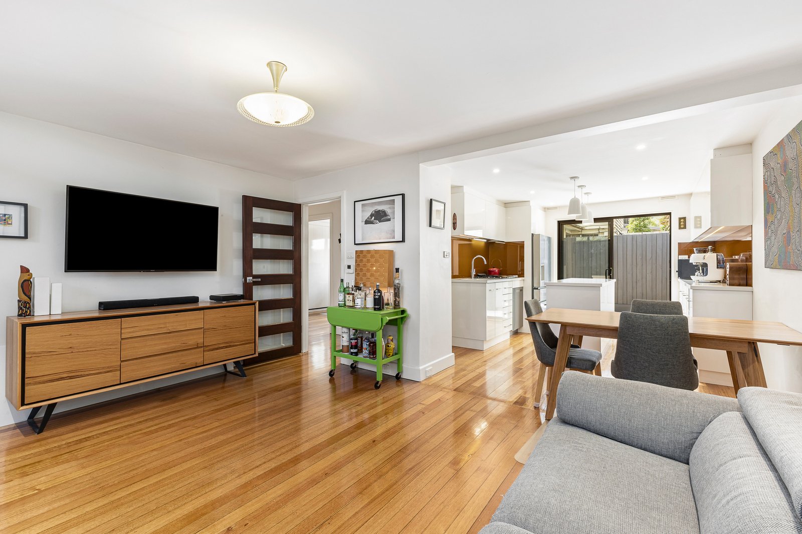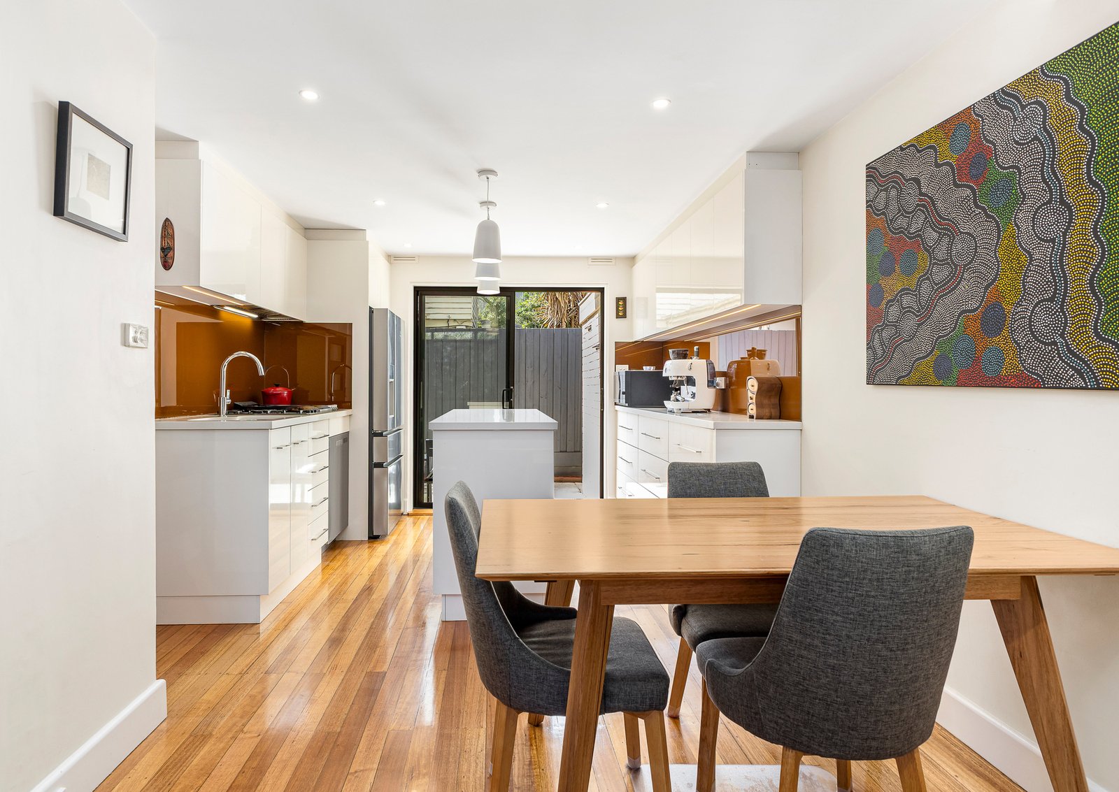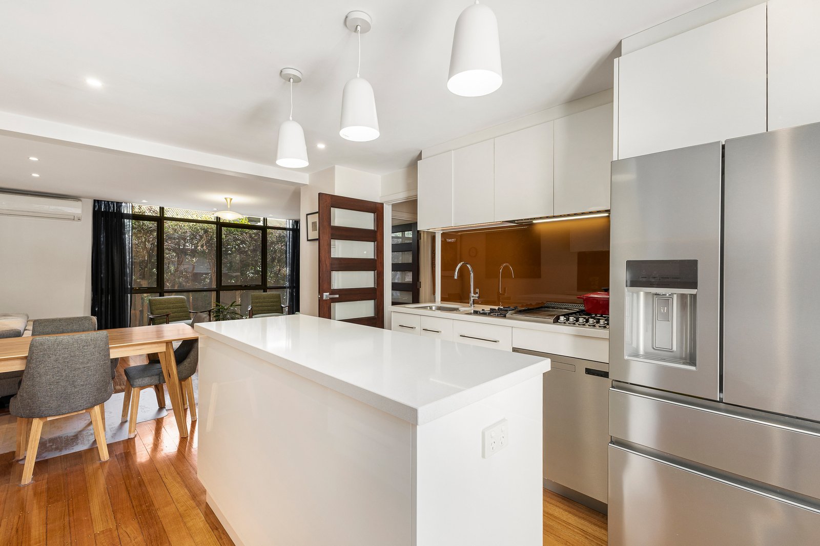 Beautifully renovated to a high standard, this ground-floor apartment combines modern finishes with practical design in a sought-after Elwood setting. Gleaming polished floorboards flow throughout, enhancing a light-filled open plan living and dining zone that connects seamlessly to a sleek entertainer’s kitchen featuring quality stainless steel appliances, island bench and gas cooking.