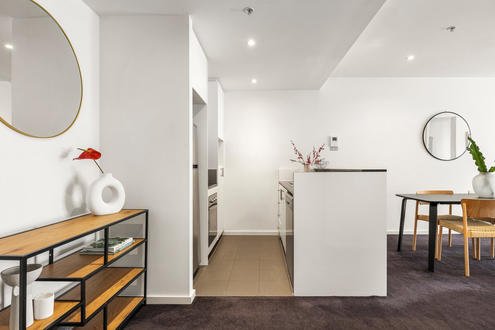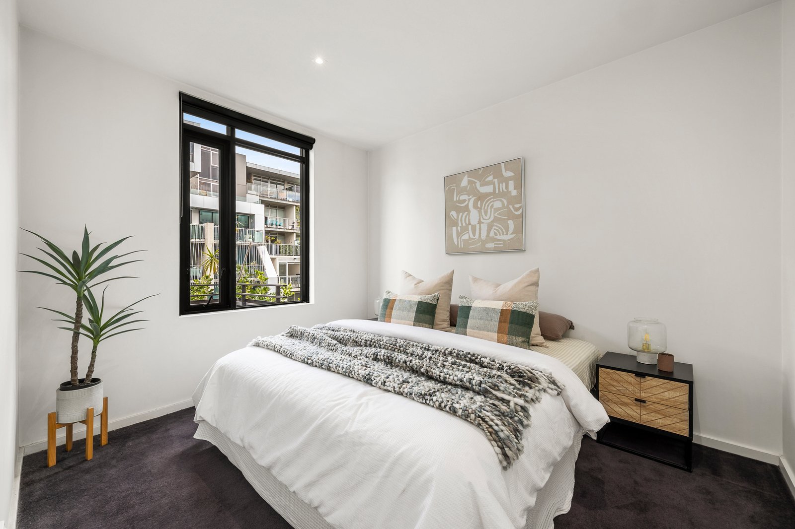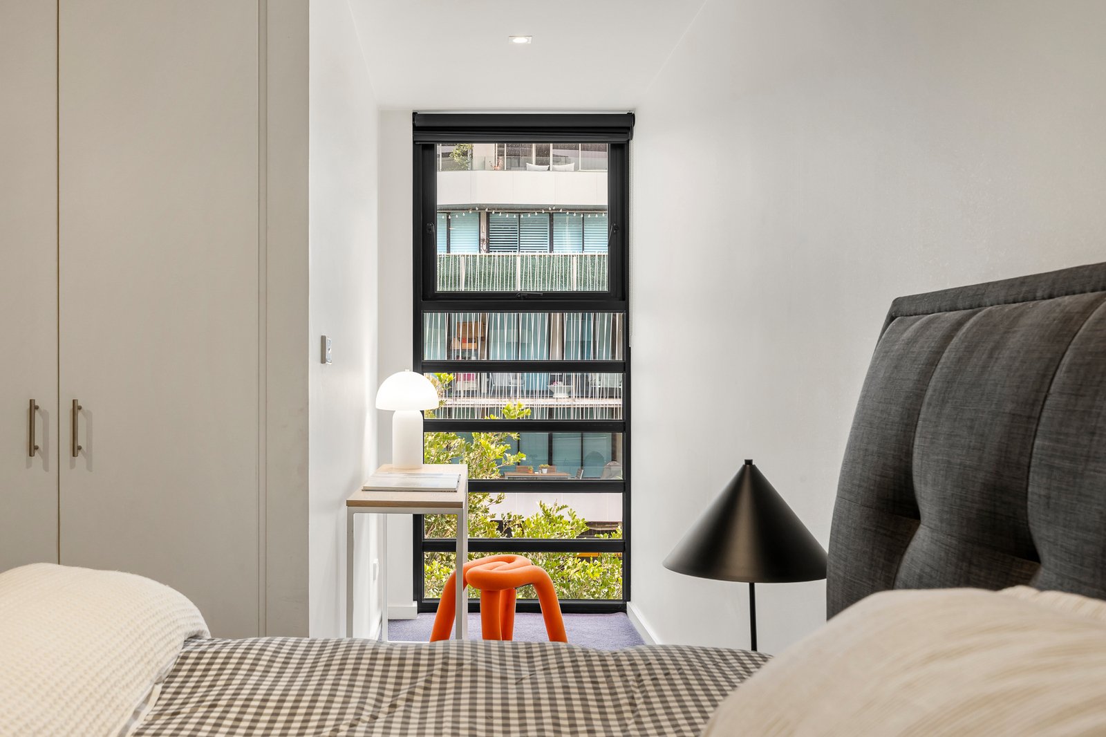 The well-appointed kitchen features sleek stone benchtops and SS appliances, while the spacious main bedroom boasts built-in robes and an integrated study nook. A second light-filled bedroom with built-in robes is complemented by a contemporary bathroom and a discreet European laundry.