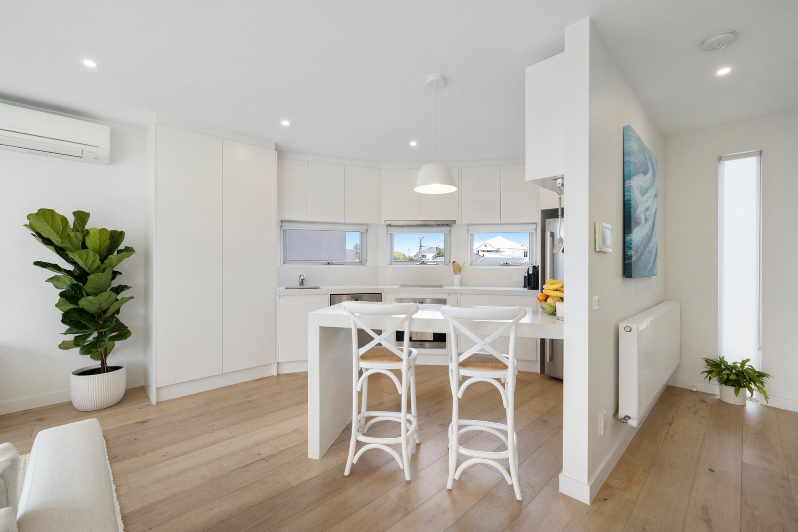 Step in from the sand or drive into the basement, follow the boardwalk or rise up in the lift ...however you arrive, this is the complete package for a carefree beachside lifestyle. Steps from the locals’ secret path to the sand, this architectural 3 bedroom, 3.5 bathroom home packages up all you need for beachside easy living. A true full-suite design with a fully-tiled private ensuite for every bedroom, this innovative home has a central living level curving out with a sea-breeze balcony and a rooftop deck with a complete bay panorama (from the sparkle of Olivers Hill to the fireworks of the city skyline)...all linked by lift complete from basement to rooftop!