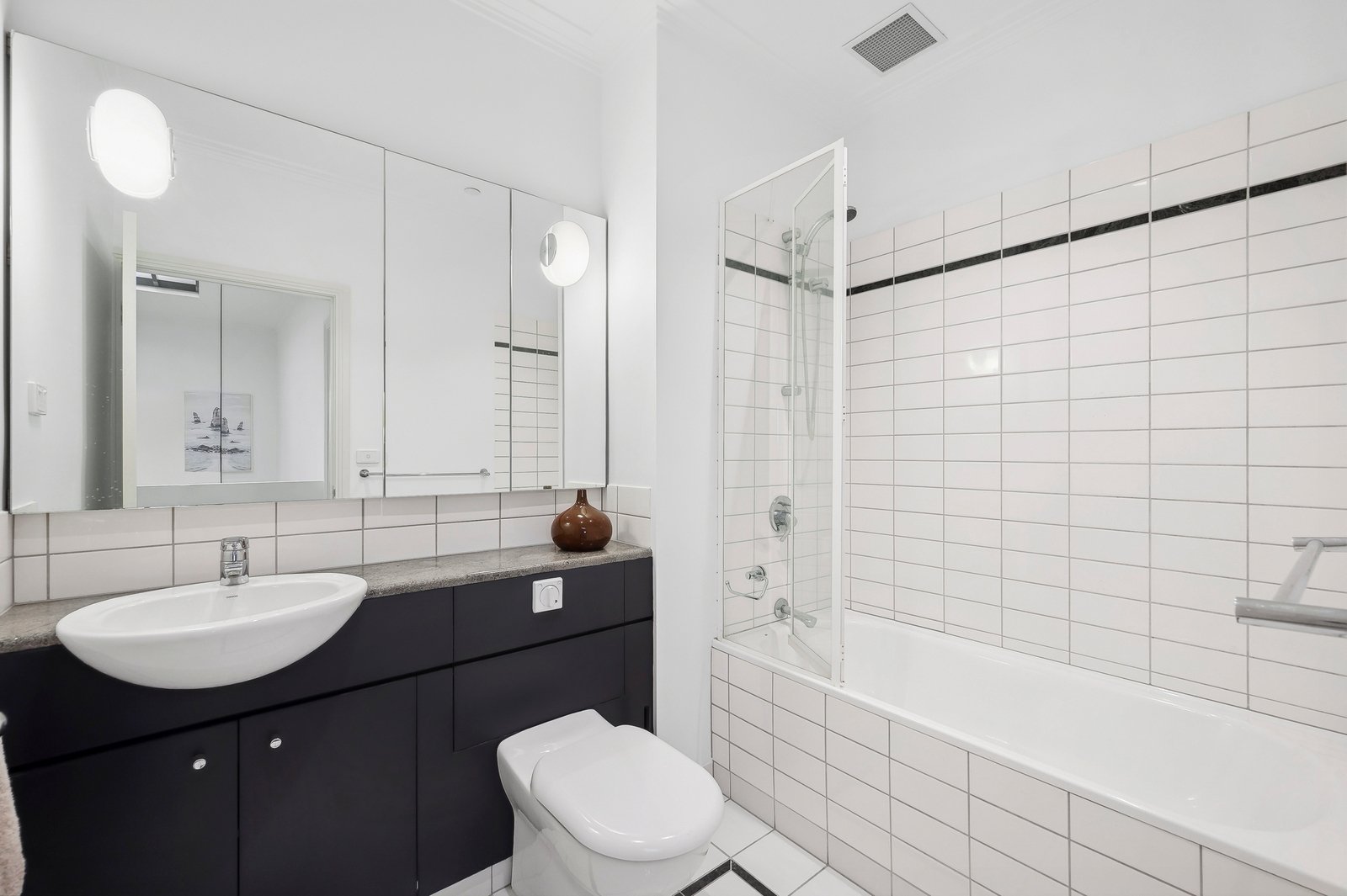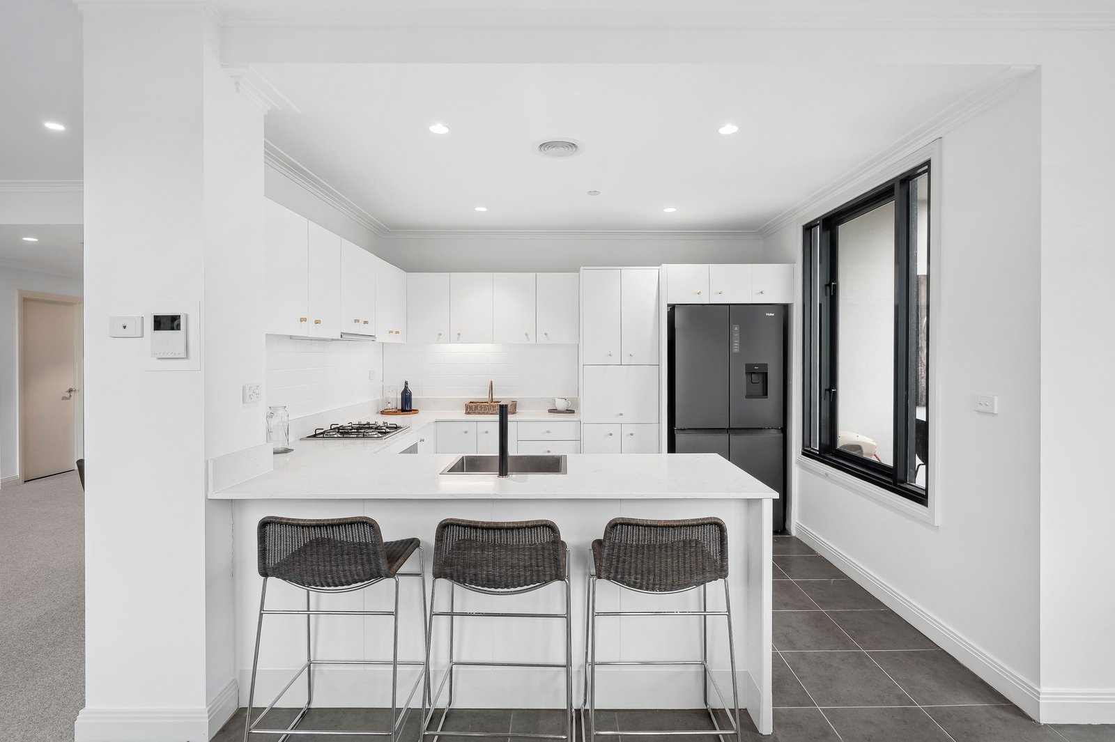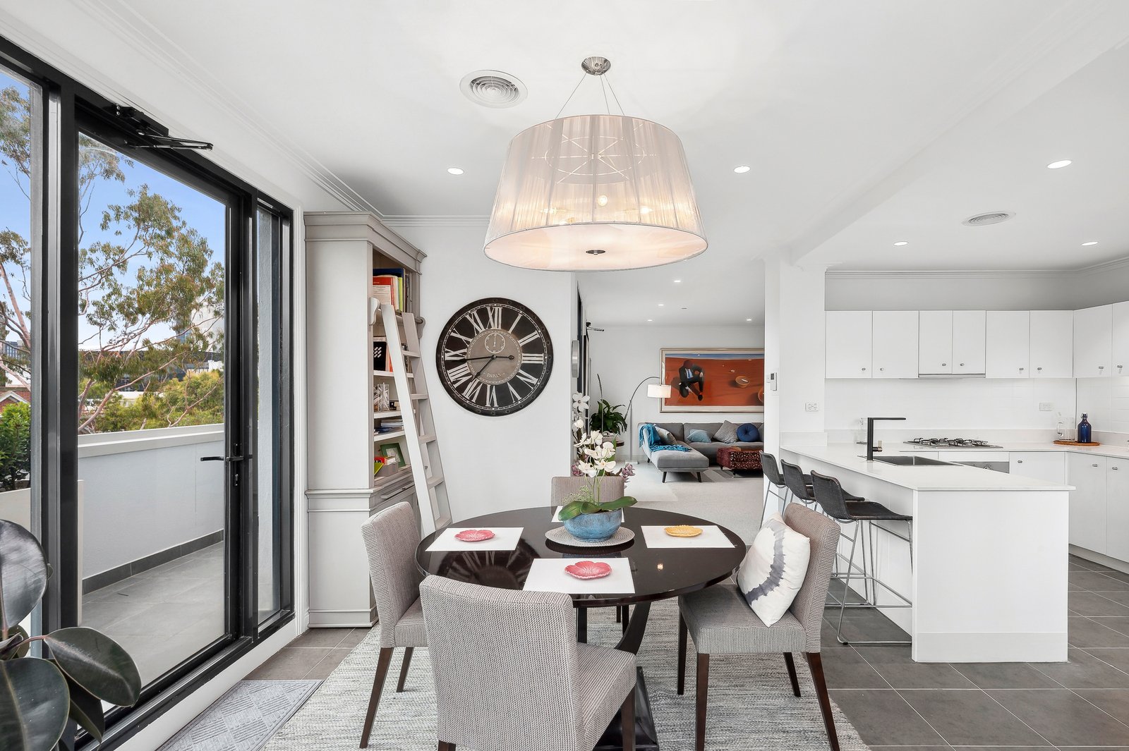 Entry to the apartment reveals an elegant living space connecting to a wrap-around balcony, featuring freshly painted interiors, modern lighting and a picturesque outlook. The open plan layout flows effortlessly through to the dining area and adjoining kitchen, complete with stone benchtops, quality appliances including 600mm oven, gas cooktop, dishwasher, and generous storage provisions. The surrounding balcony offers a selection of spaces to enjoy the sun or shade, completing an impressive layout for everyday living and easy entertaining.