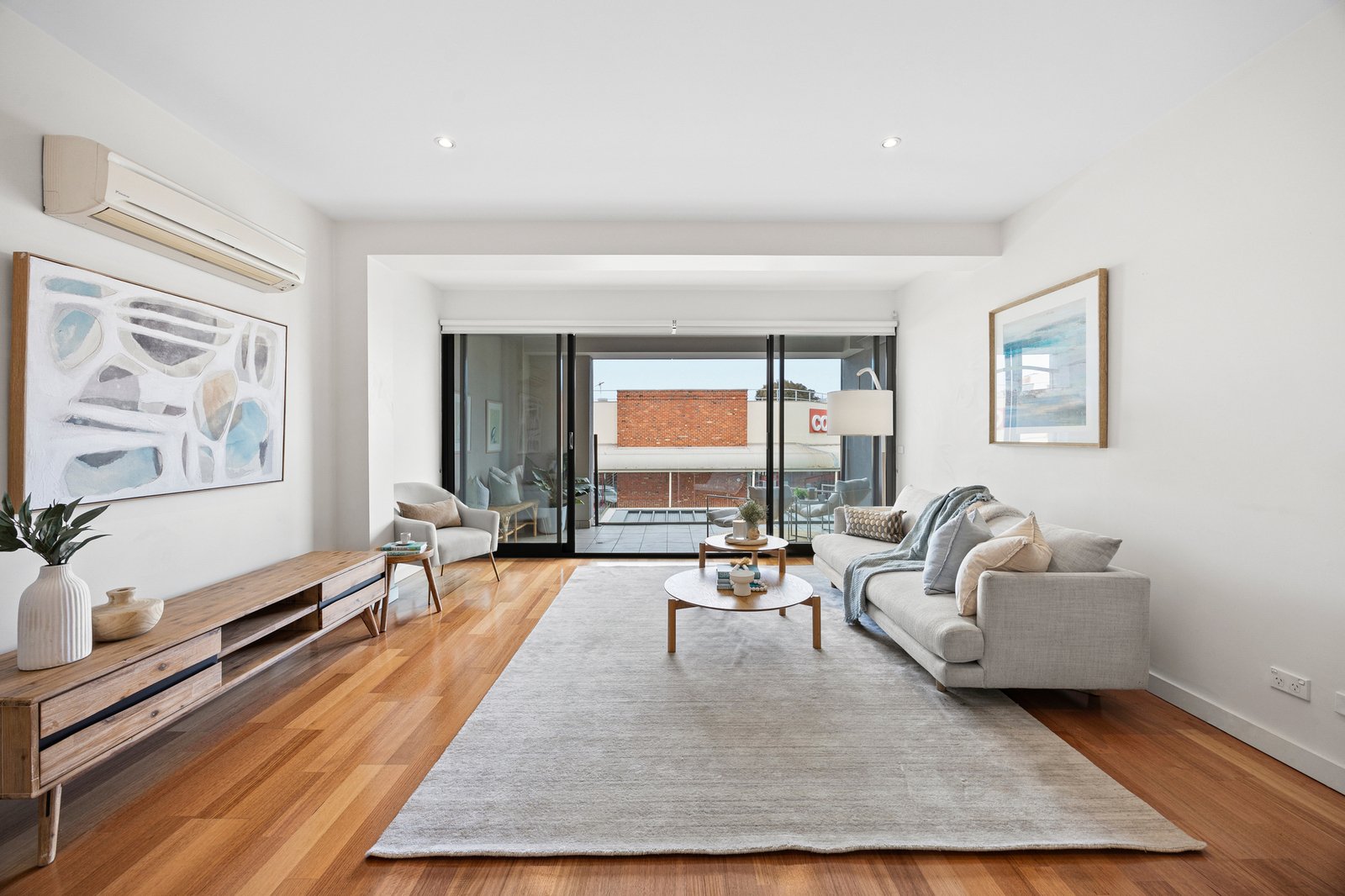 Light-filled and thoughtfully designed, interiors reveal a timeless palette of soft neutrals, warm timber floors, and quality finishes. Expanses of glazing draw the outdoors in, while two distinct external spaces - a full-width balcony and a private light well - add both functionality and flair.
