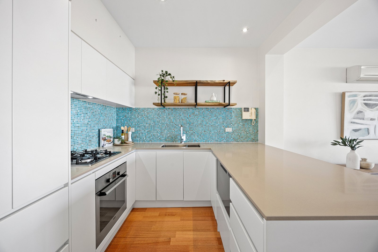 The generous living and dining domain is anchored by a sleek stone-topped kitchen with Bosch and Fisher & Paykel appliances, breakfast bar, and abundant storage, seamlessly extending through stacking glass sliders to the undercover balcony, where sea breezes and al fresco moments can be savoured year-round.
