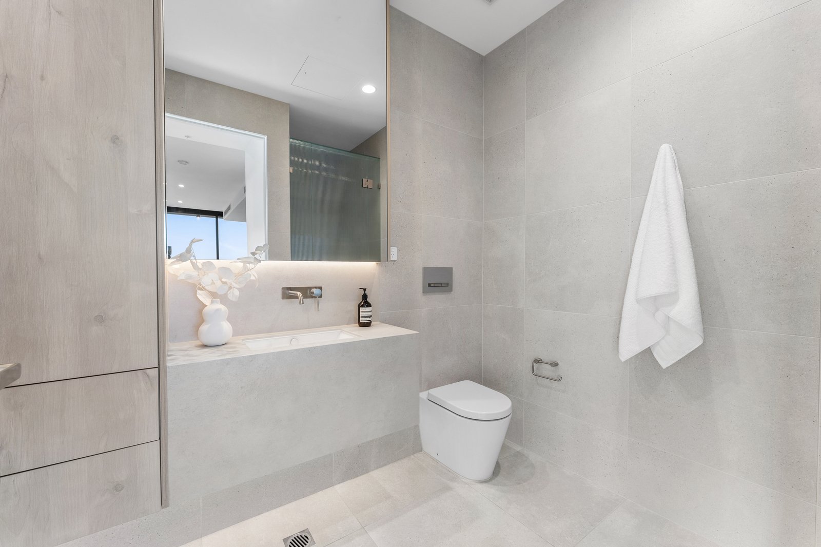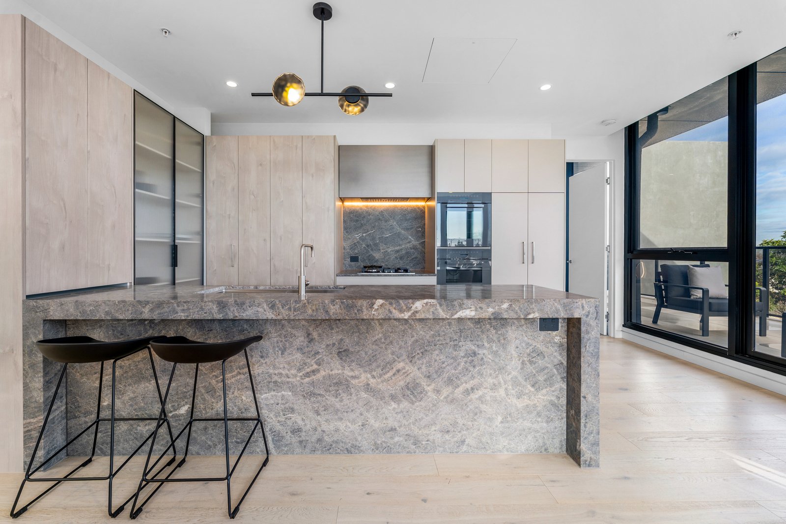 At the heart of the home, a statement kitchen awaits, appointed with premium Miele appliances and dramatic Elysium Quartzite stone finishes-where functionality meets timeless design. The bathrooms impress with floor-to-ceiling tiling, custom feature lighting, and fluted glass accents, creating a sanctuary of indulgence.
