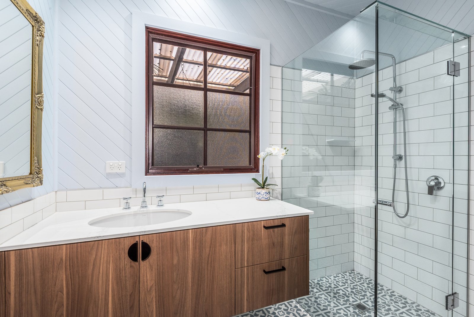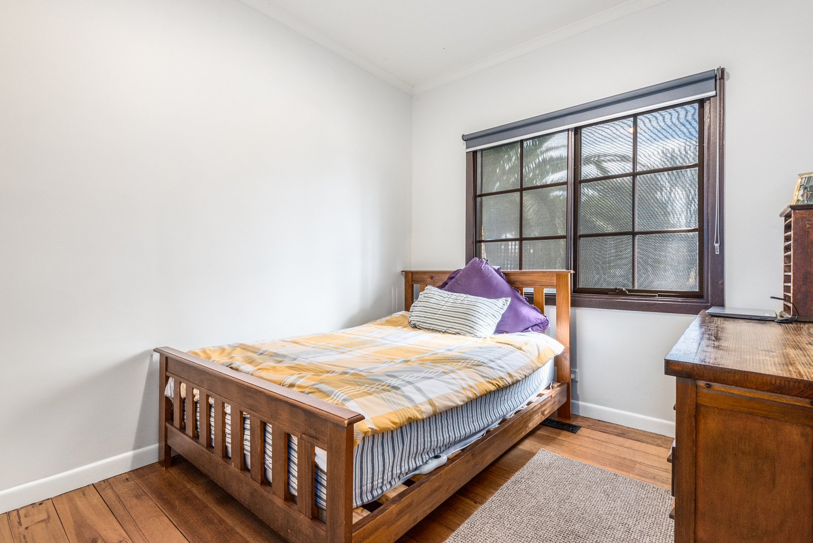 The main bedroom is spacious and bright, with north facing windows and generous built-in robes. Two additional bedrooms also include built-in robes, all serviced by a stunning central bathroom presented in contemporary finishes, featuring a custom-built vanity with stone benchtop, and classic subway tiles. A separate wc, plus laundry with additional wc cater for harmonious use of amenities. Ducted heating and split system heating and cooling ensure comfortable living all year round.