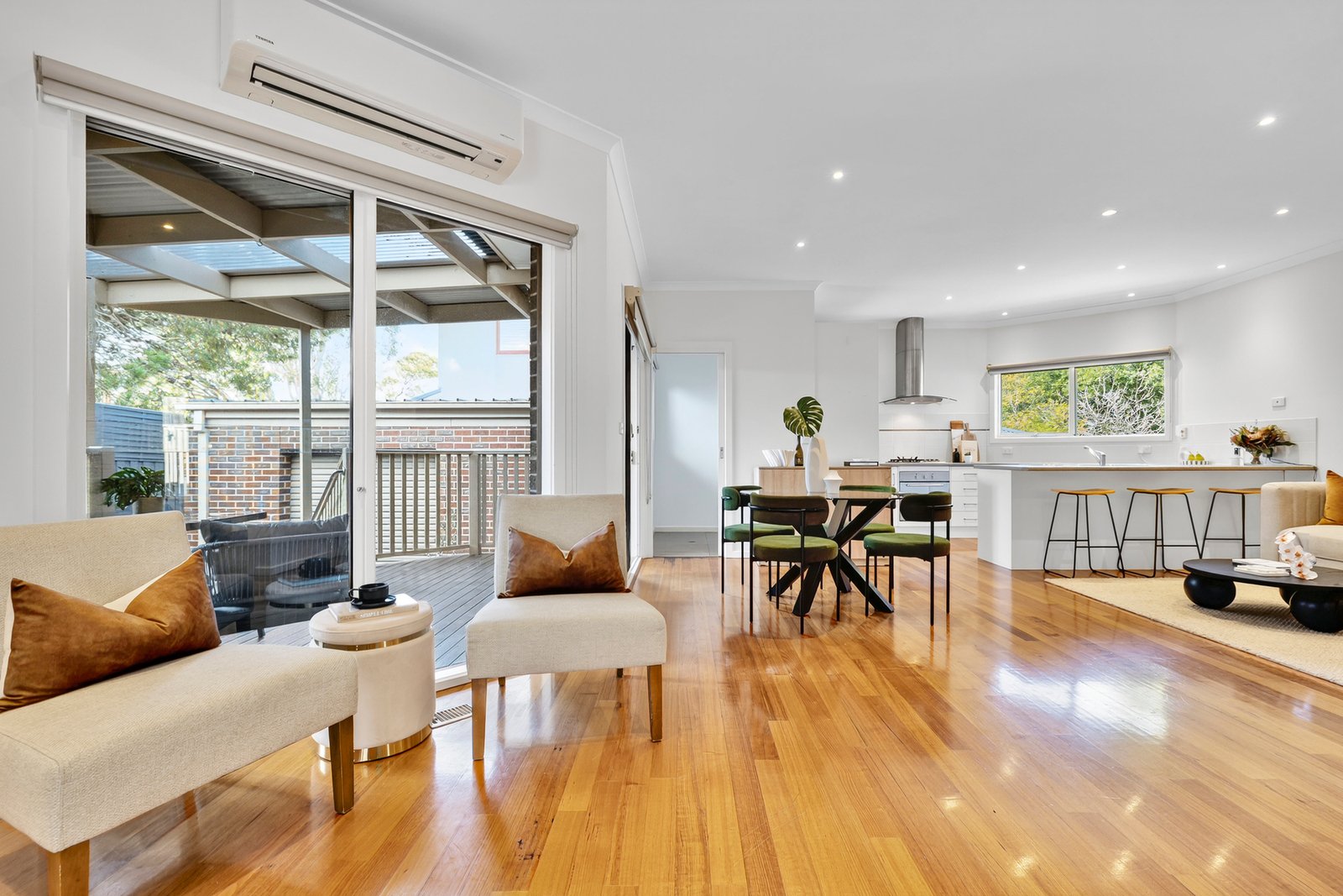 Set peacefully at the front of just two, this inviting single level home delivers modern comfort, natural light and a generous sense of space, all in a sought-after Ashwood pocket. Designed for easy everyday living, the open plan domain flows seamlessly from the lounge and dining area through to a well-appointed kitchen and an undercover deck that doubles as a year-round entertaining zone.