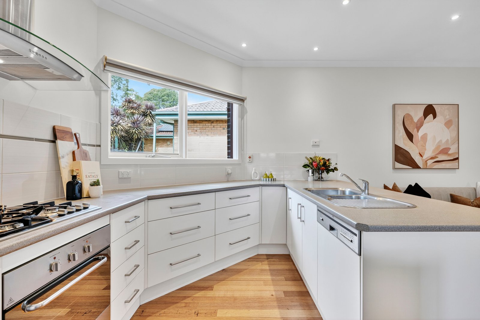 Beautifully presented with polished hardwood floors, ducted heating and split system cooling, this residence strikes a perfect balance between warmth and functionality. The kitchen impresses with gas cooking, stainless steel appliances and excellent storage, while the adjoining living zones create a relaxed atmosphere for both entertaining and daily family life. Accommodation includes two robed bedrooms (main with ensuite and walk-in robe), a sparkling central bathroom, separate laundry with outdoor access, and an auto garage with internal entry.