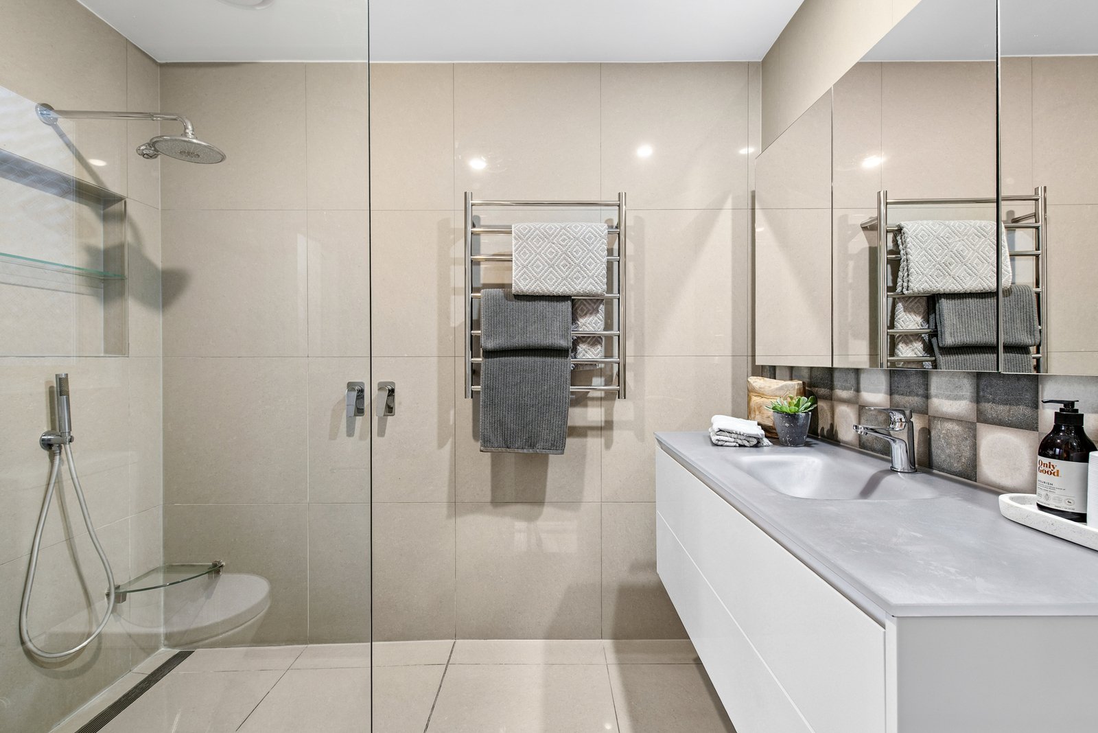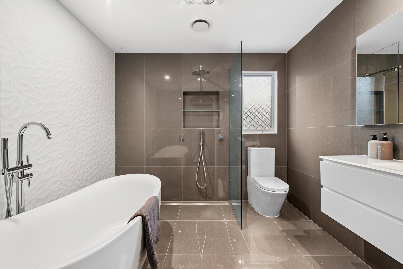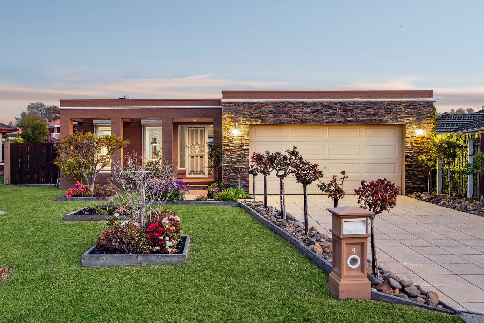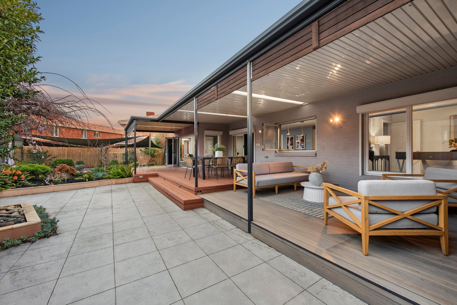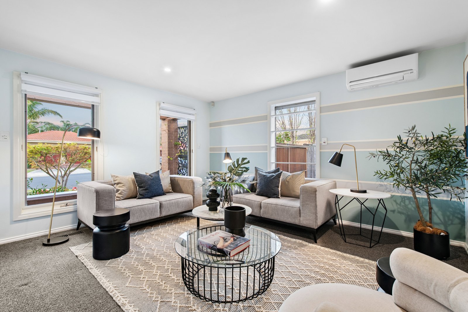 The carpeted double bedrooms all offer fitted robes and include a front master with a sparkling ensuite and views of a tranquil courtyard. The three further bedrooms are zoned together with the stylishly renovated bathroom boasting a luxe freestanding bath to create a perfect kids’ wing.