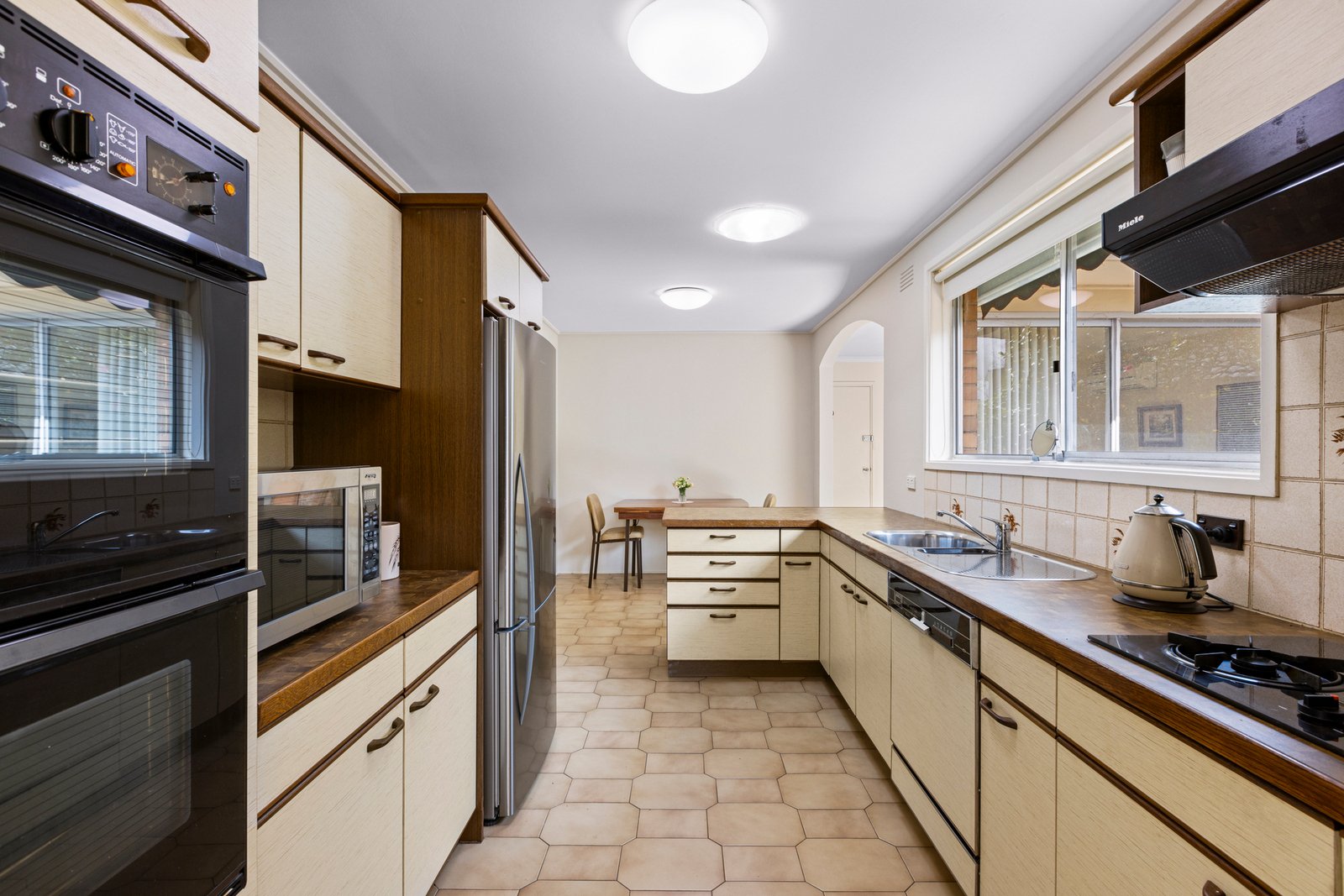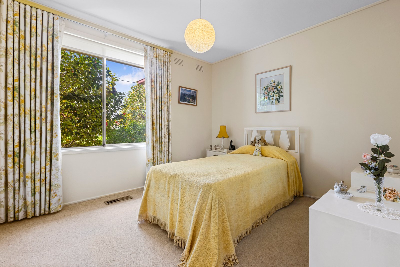 Showcasing classic design for contemporary living. It is an ideal choice for families seeking a convenient lifestyle. The home's facade showcases aluminium windows that invite natural light through. A concrete driveway complements the lush, landscaped gardens, adding texture and enhancing street appeal. Private backyard, creating the perfect outdoor setting for hosting gatherings or enjoying relaxed family weekends. Inside, this solid brick three bedroom home comprises of an L shaped living and dining area, carpeted floors add warmth and elegance, three generously sized bedrooms provide ample storage, the well maintained kitchen boasts cabinetry and drawers, paired with a dishwasher, oven and gas burner cooktop, complemented by a meals area that flows seamlessly outside, ducted heating and split cooling , laundry with external access and hot water system.