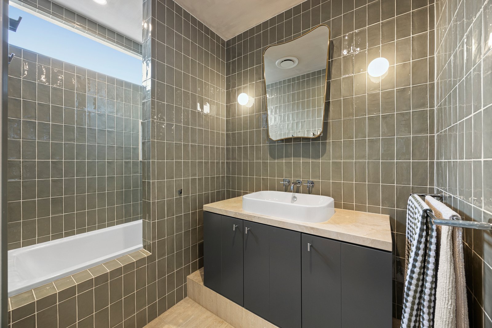 An uncompromising showcase of high style inside and out, this Hill home brings together a luxe curation centred on the subtle Blum cabinetry, integrated appliances, and fine stone benchtops of the sophisticated kitchen...and continued by the artisan tiles, Travertine surfaces, and Mary Noall designer fittings of the bathroom and powder-room.