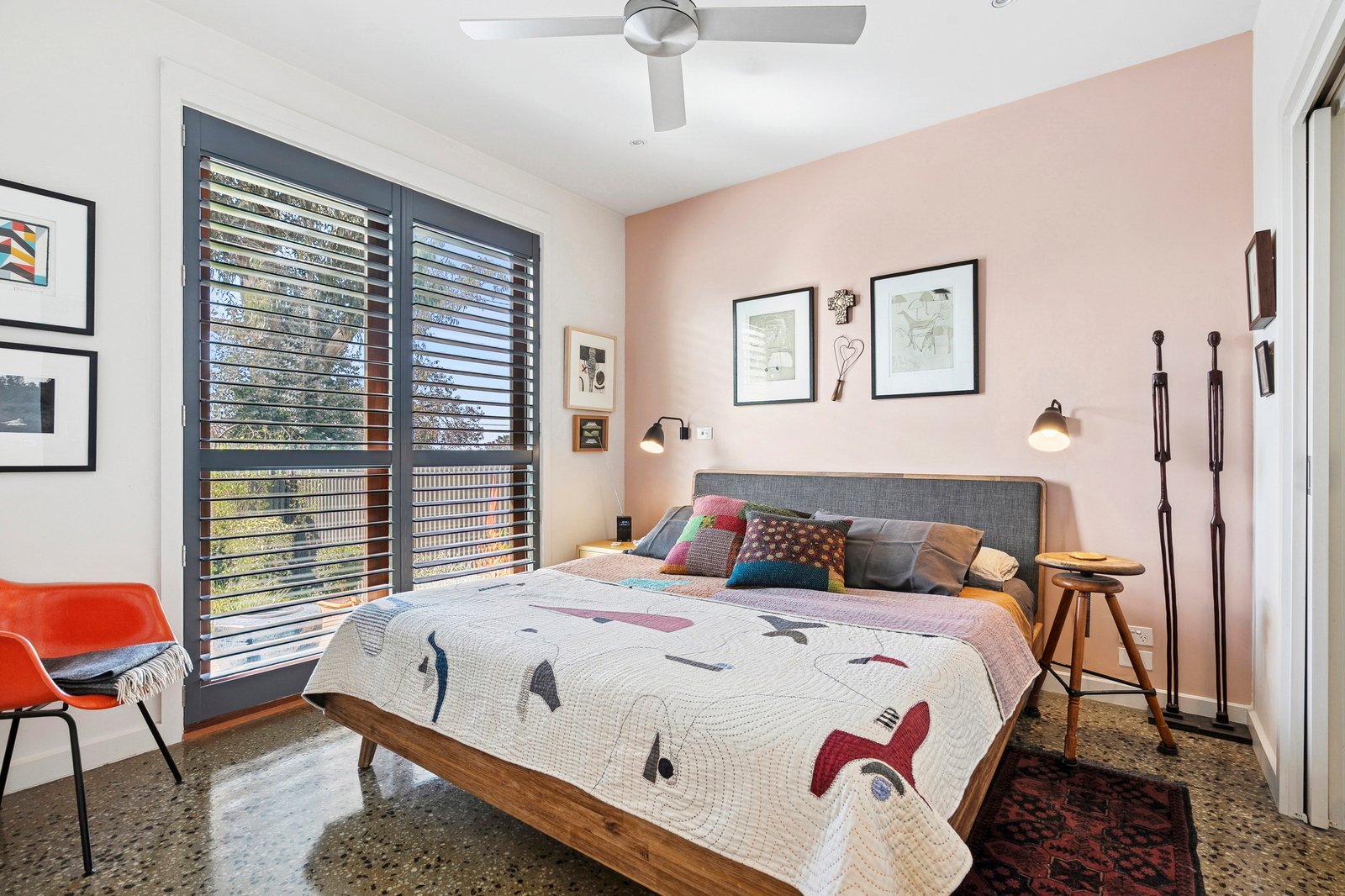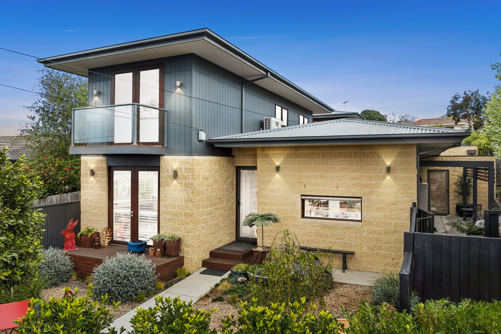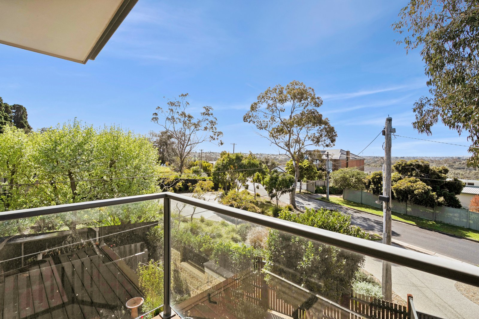 The floor plan has been thoughtfully designed, with the master suite located on the lower level complete with walk-in robe and ensuite. Upstairs, two further bedrooms are accompanied by a central bathroom, one featuring updated flooring and a private balcony with elevated views across Highton — perfect as a retreat or studio space. A converted garage adds flexibility, offering a versatile bedroom, studio, or lounge with direct outdoor access, while still providing off-street parking.