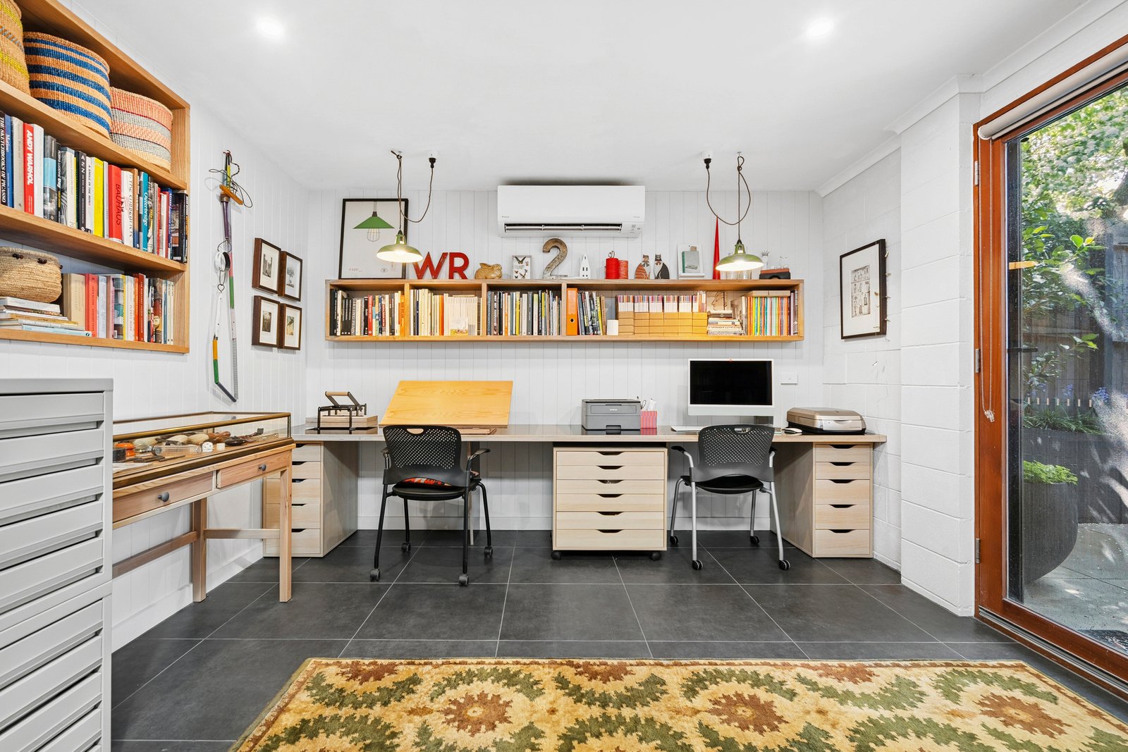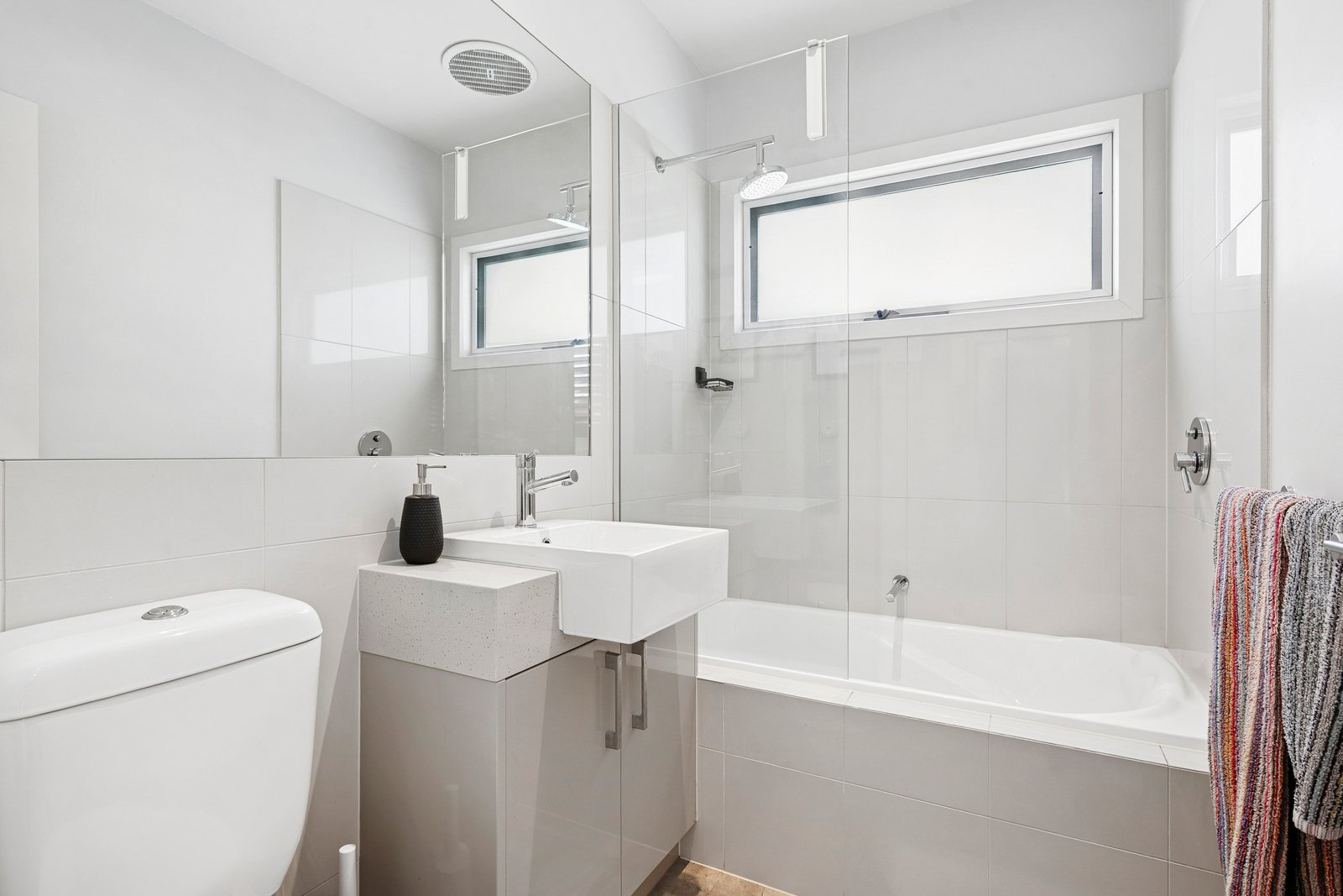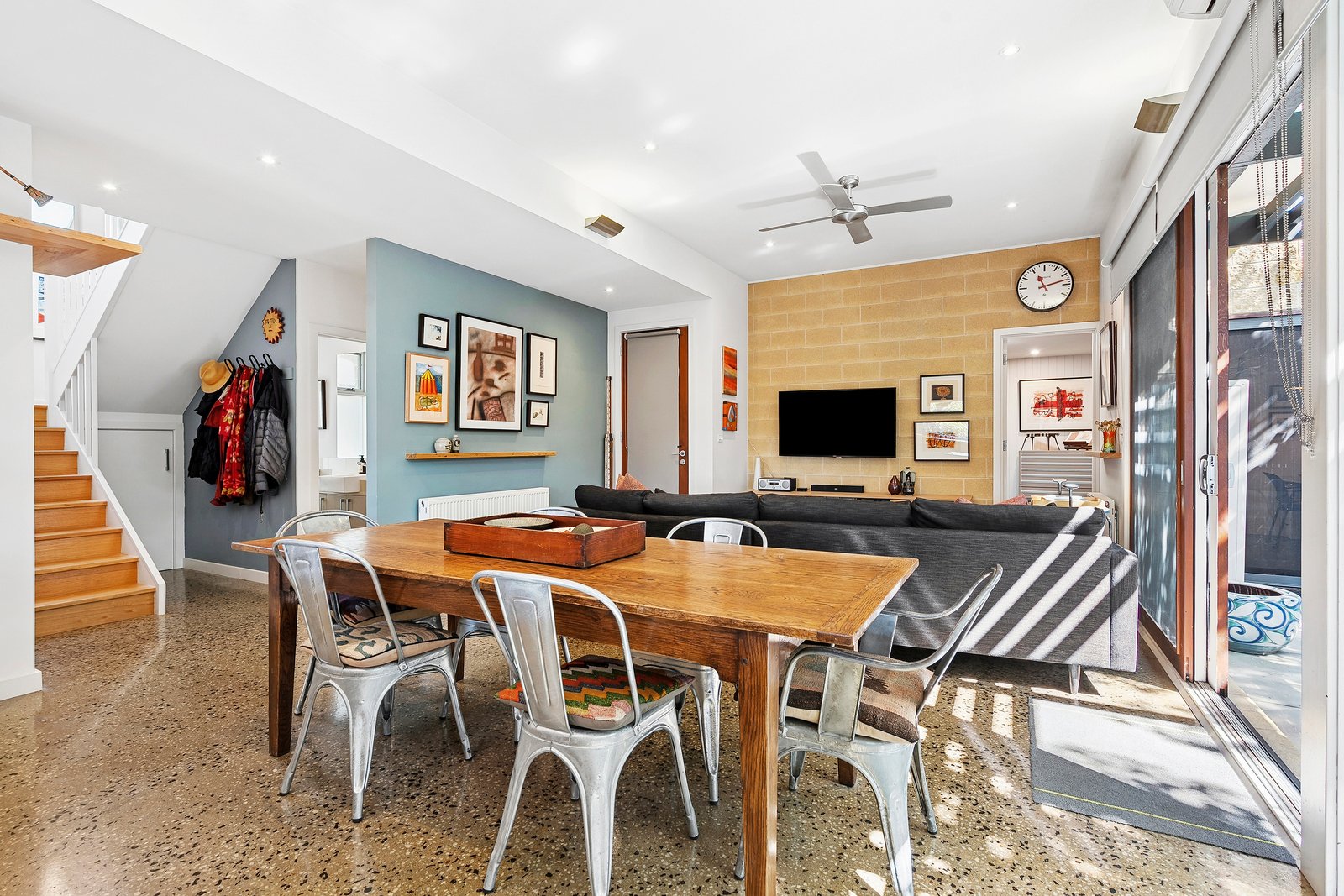 Set at the front of a boutique group of three, the property enjoys a private front yard and striking street appeal. Designed for year-round enjoyment, the north-facing alfresco connects seamlessly to the sun-drenched open-plan living and dining area, creating a welcoming space for everyday living and entertaining. The beautifully renovated kitchen impresses with stone benchtops including a large island bench, a gas cooktop, new oven and taps, quality appliances, and excellent storage.