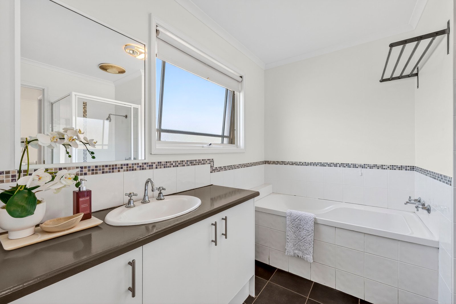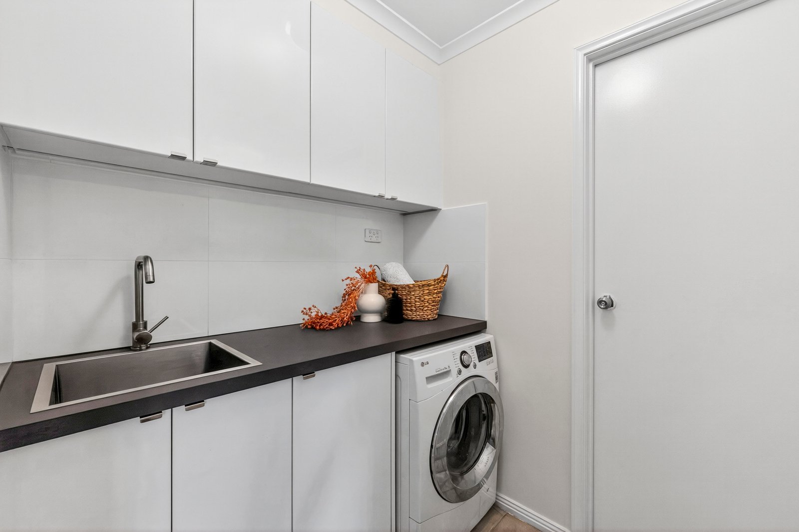 The first floor hosts three bedrooms served by a sparkling bathroom with tub and a separate toilet. Supported by a fitted laundry with an additional guest toilet, a garage with internal access, RC/AC and ceiling fans throughout as well as focus on terrific storage in every available nook including the garage ceiling and roof storage from the master bedroom.