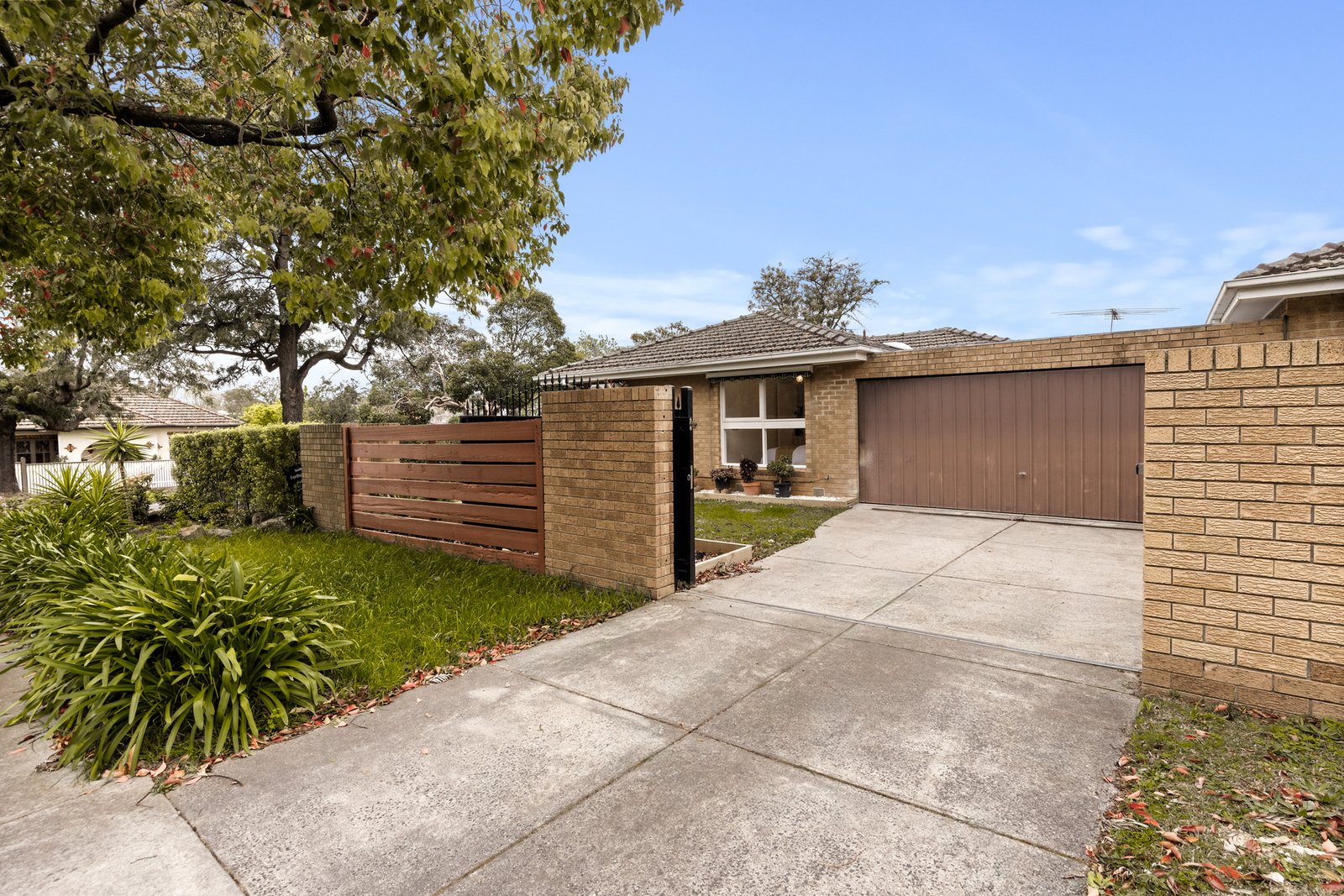 The remote double garage with private driveway and secure gate ensures privacy and practicality, while the brick-fenced backyard and expansive side yard are perfect for entertaining or pets.