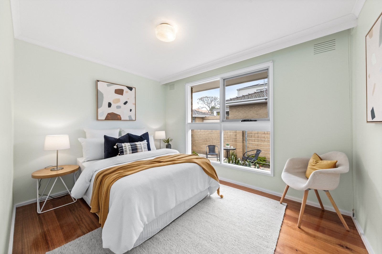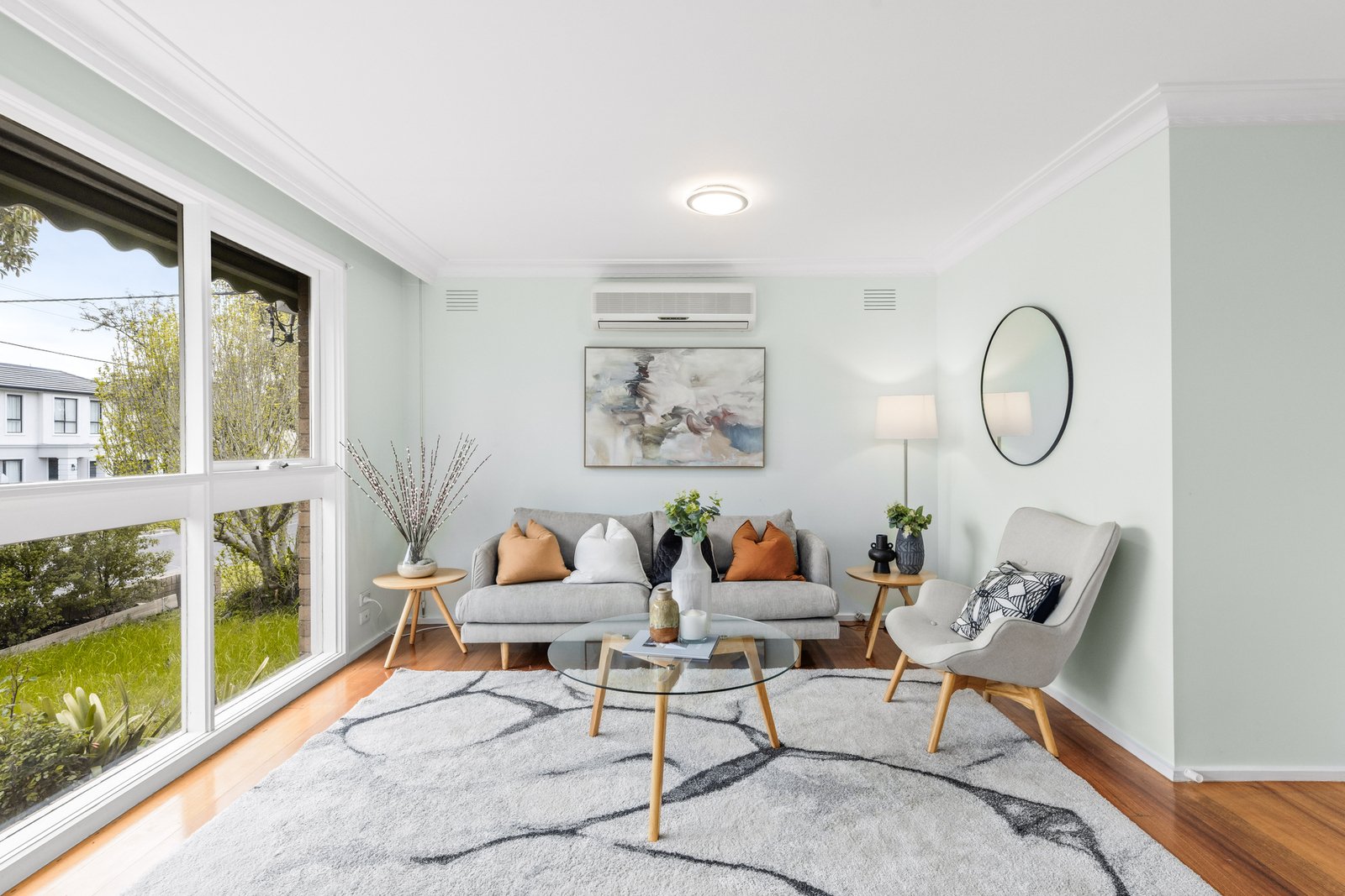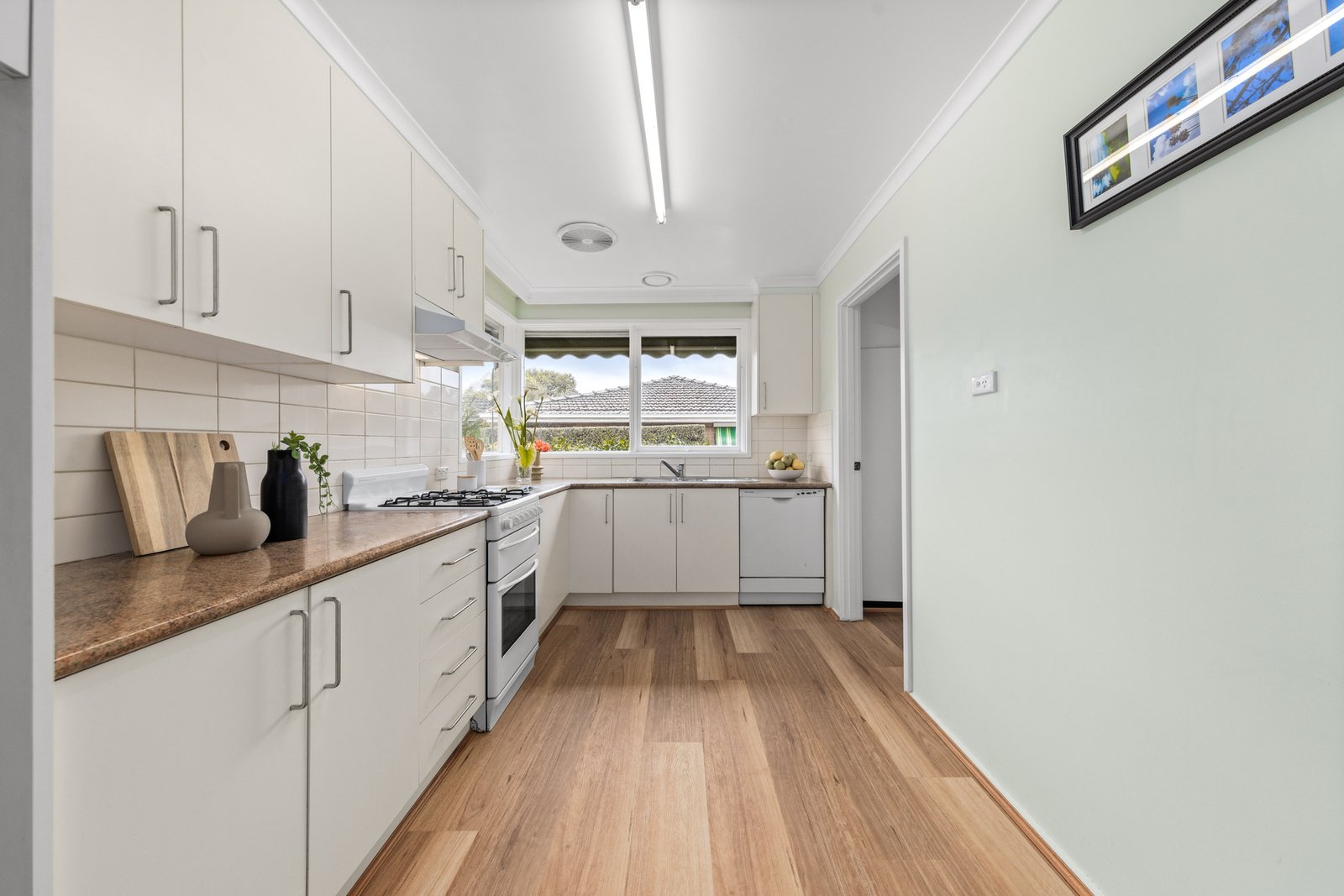 Three bedrooms (two with built-in robes) are serviced by a fully renovated bathroom and skylit powder room, while the generous living area provides a welcoming retreat. A modern kitchen and laundry open to the backyard, complemented by polished hardwood floors and two split-system air conditioners.