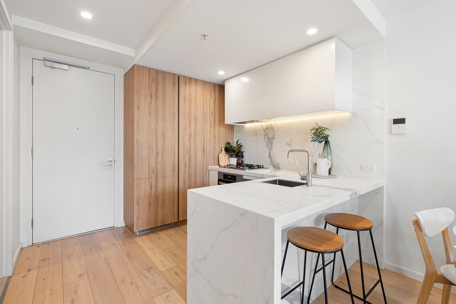 Ideal for first-home buyers, investors or downsizers, the home centres around a stunning kitchen with feature stone splashback, waterfall bench, integrated dishwasher and fridge, plus sleek wood cabinetry. The living/dining zone is complemented by split system AC and opens to a sunlit balcony for entertaining.